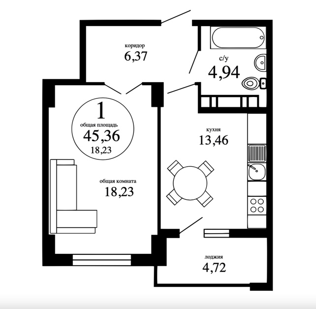 Площадь, кв.м. 45