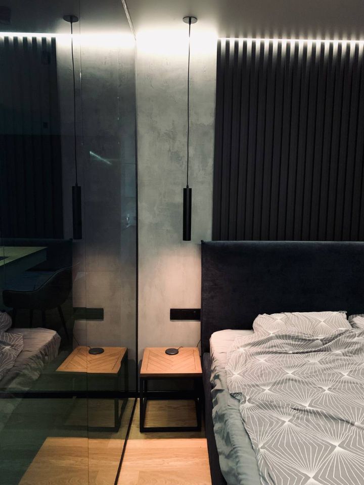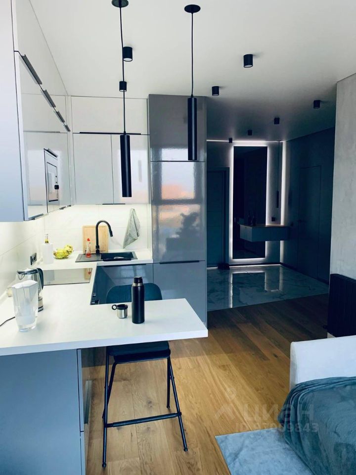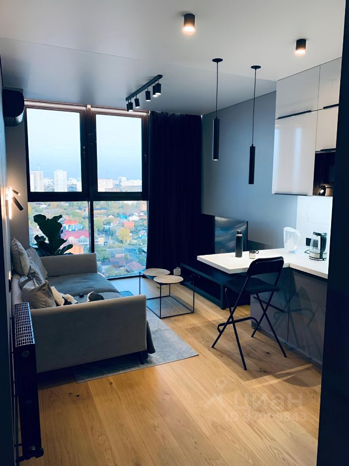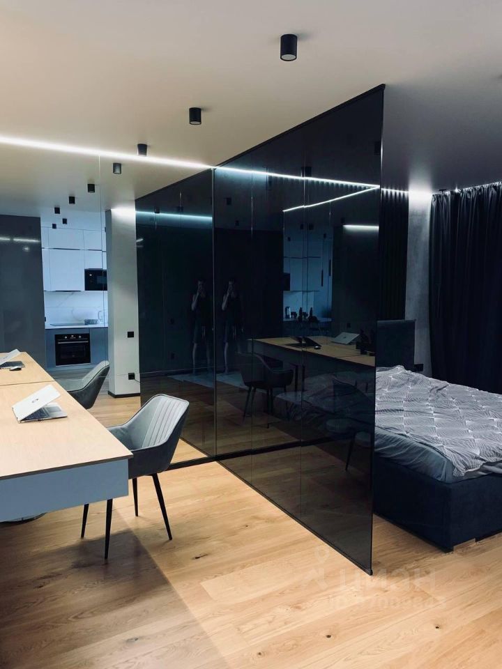 Закрытая территория комплекса. Подземный паркинг с возможностью спуска на лифте. Квартира расположена на 19 этаже. Планировка: общ. S=43 кв.м, 1 изолированное спальное место и кухня-гостиная, с/у, гардеробная. Высота потолков 2,80 м. Состояние квартиры - идеальное,выполнен качественный дизайнерский ремонт. Квартира полностью мебелированна и обустроена техникой.