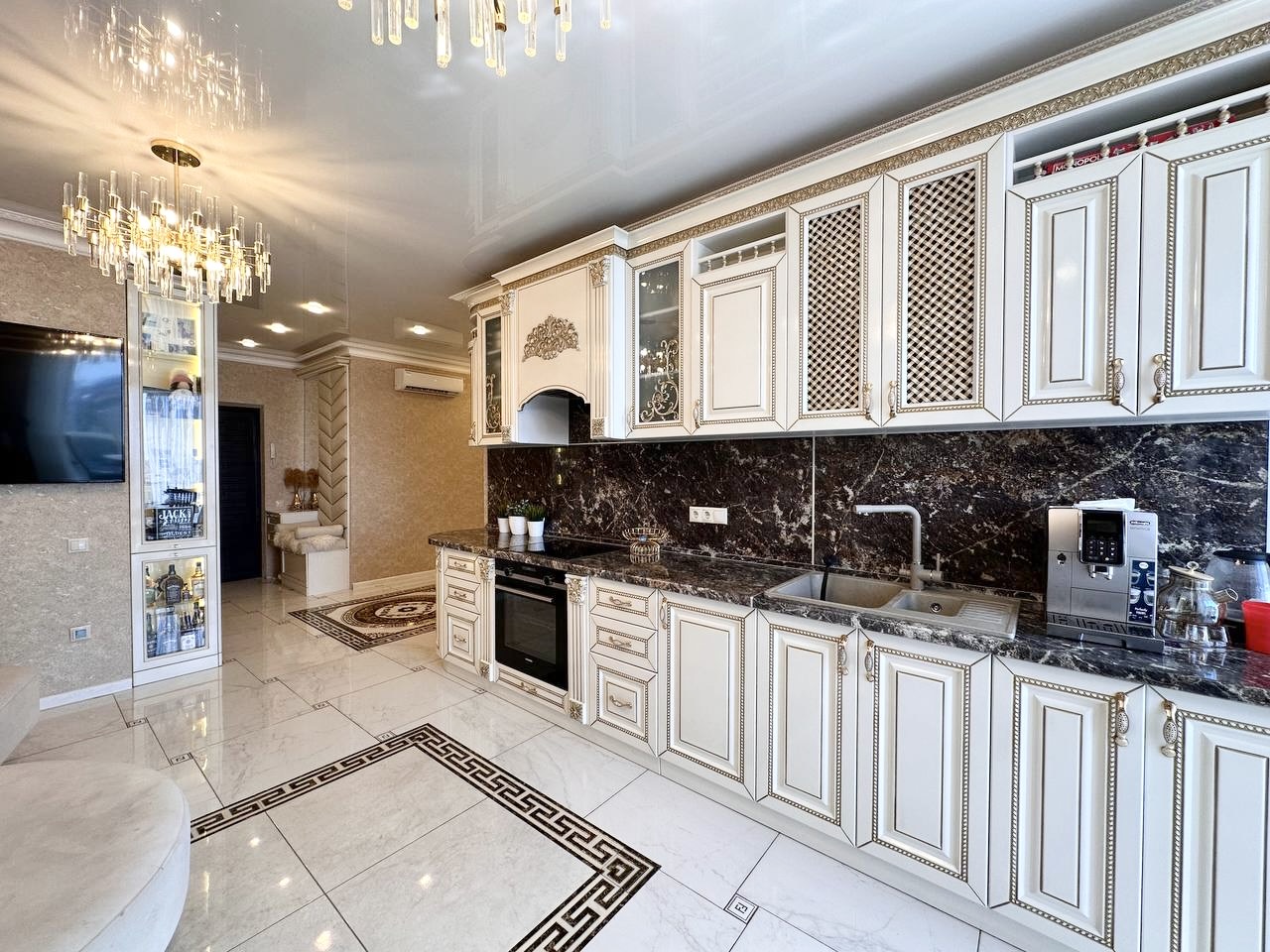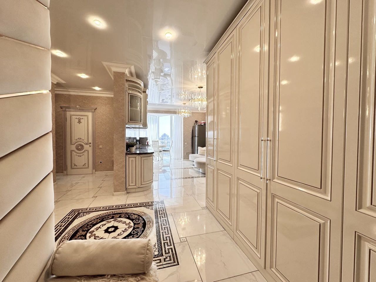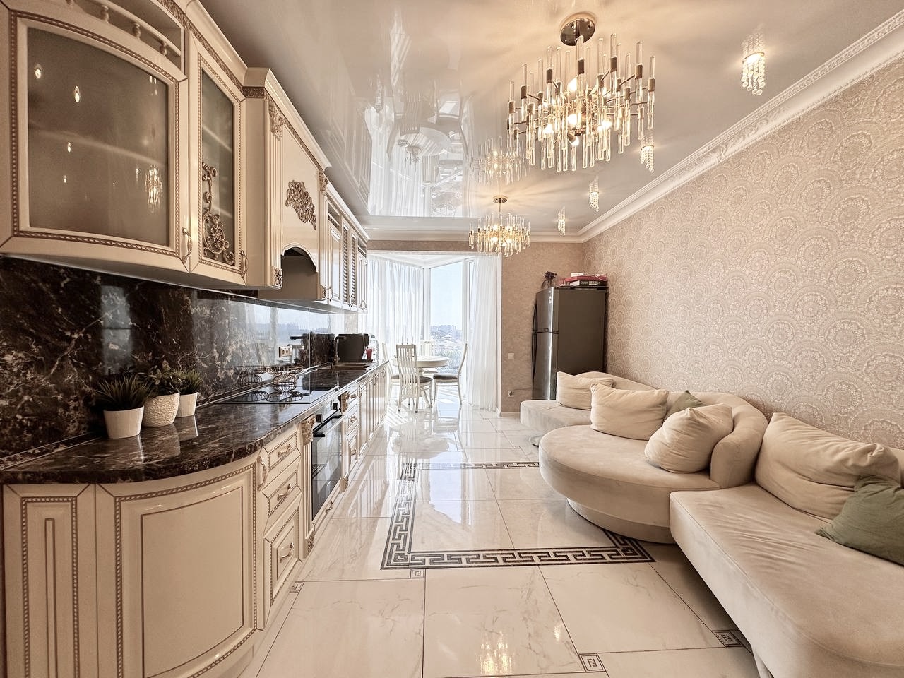 Закрытая территория комплекса. Подземный паркинг с возможностью спуска на лифте. Квартира расположена на 8 этаже. Планировка: общ. S= 75 кв. м, 2 изолированные комнаты и кухня-гостиная, с/у совмещен , просторная витражная лоджия. Высота потолков 2,80 м. Состояние квартиры - дизайнерский ремонт.