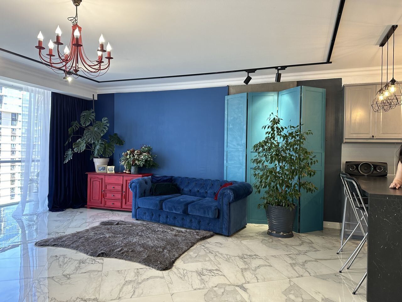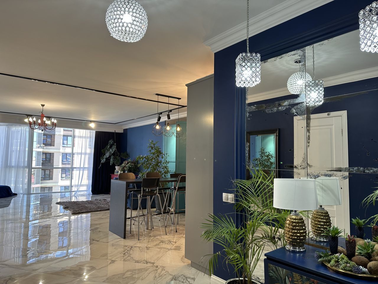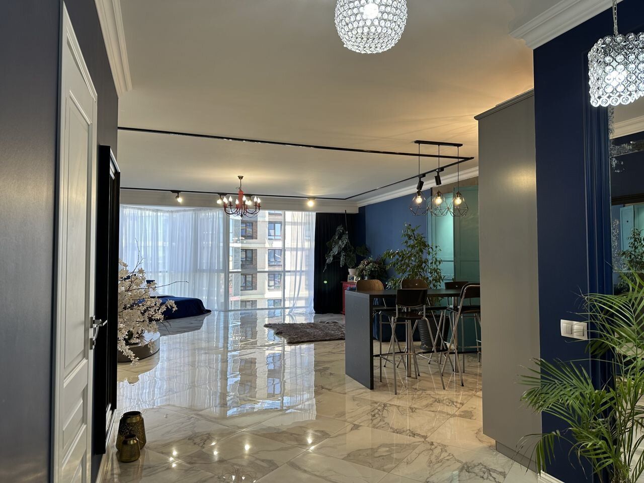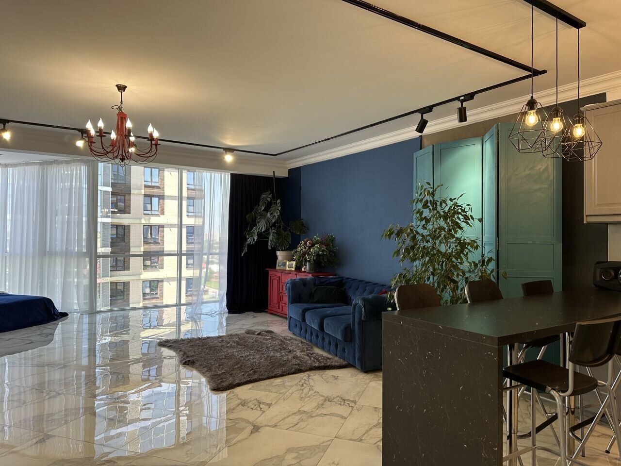 Закрытая территория комплекса. Подземный паркинг с возможностью спуска на лифте. Квартира расположена на 14 этаже. Планировка: общ. S= 69 кв. м, свободная планировка, с/у, просторная витражная лоджия. Высота потолков 2,80 м. Состояние квартиры - дизайнерский ремонт. Мебель остается по договоренности.