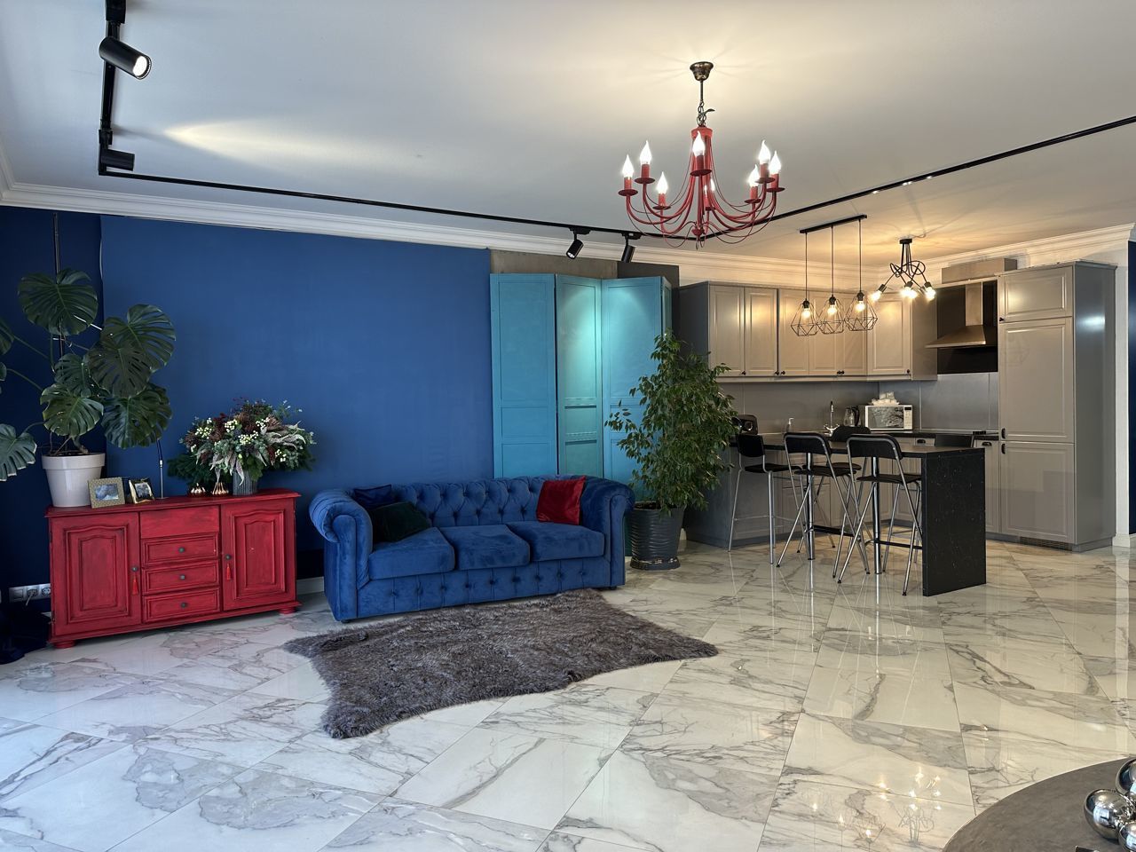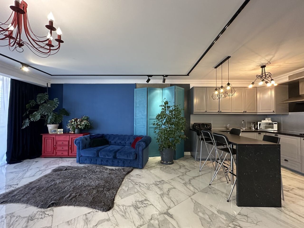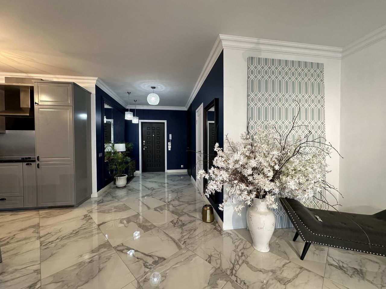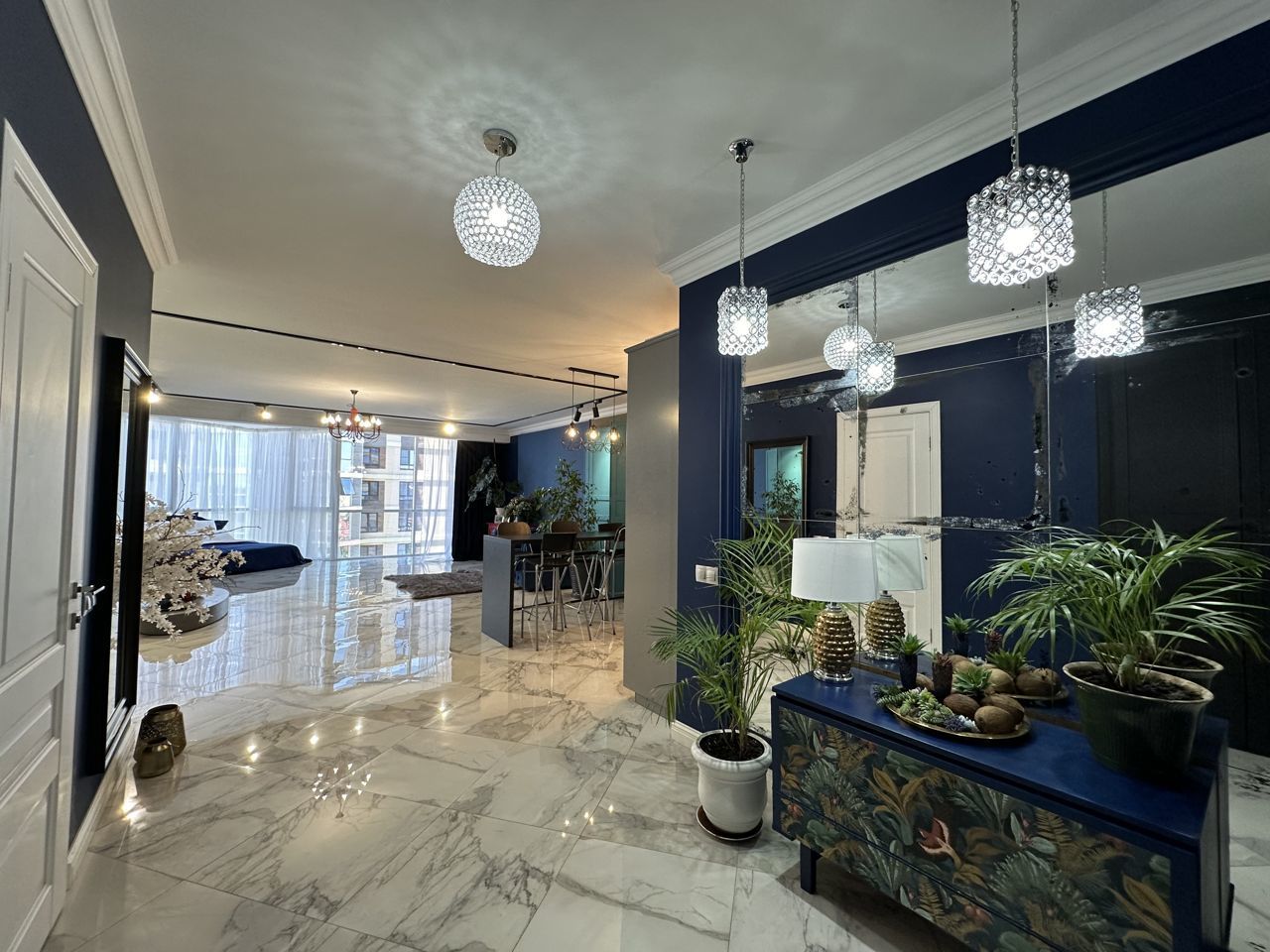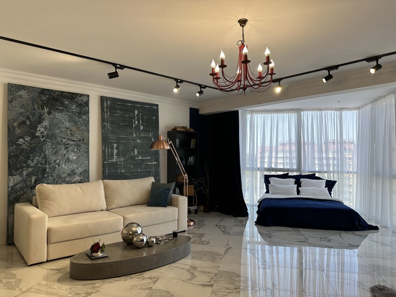 Закрытая территория комплекса. Подземный паркинг с возможностью спуска на лифте. Квартира расположена на 14 этаже. Планировка: общ. S= 69 кв. м, свободная планировка, с/у, просторная витражная лоджия. Высота потолков 2,80 м. Состояние квартиры - дизайнерский ремонт. Мебель остается по договоренности.