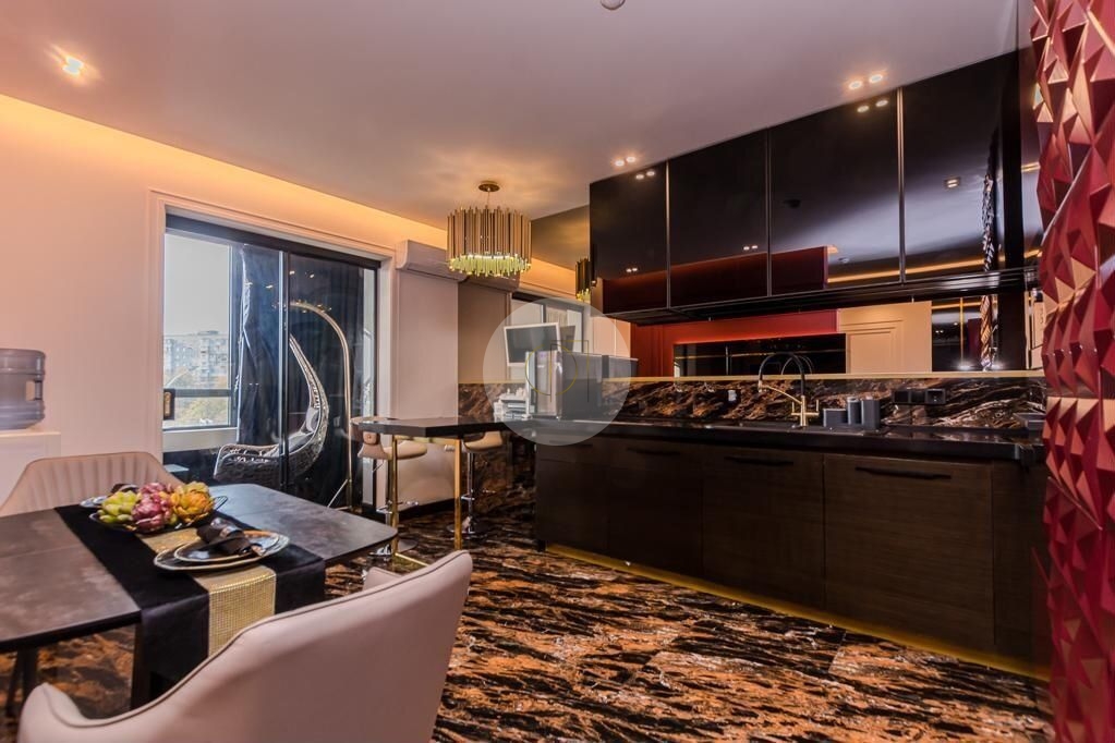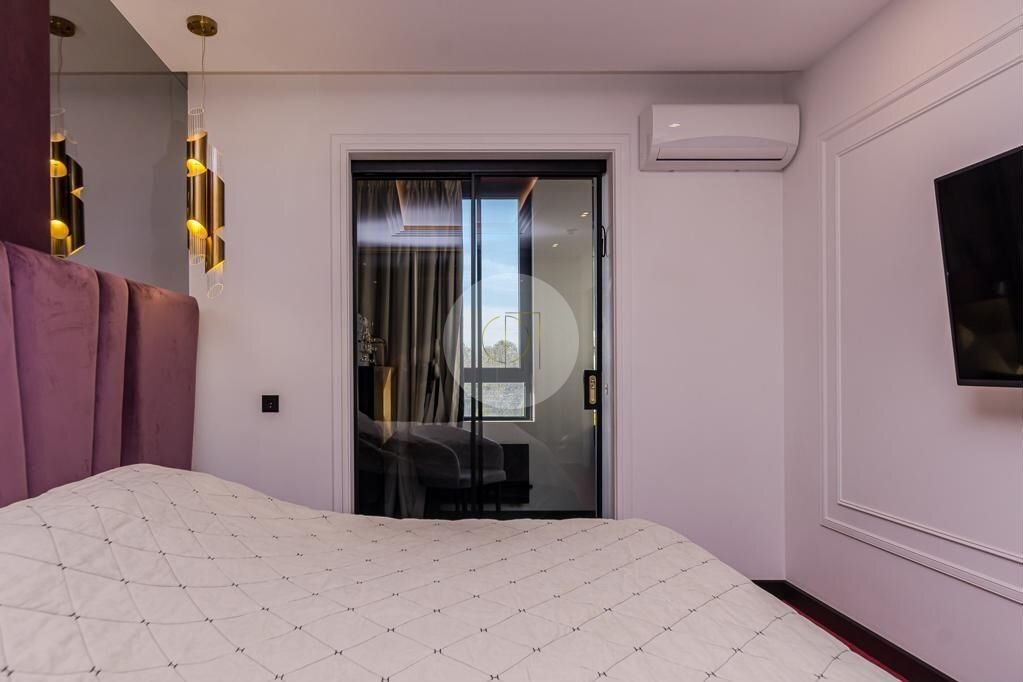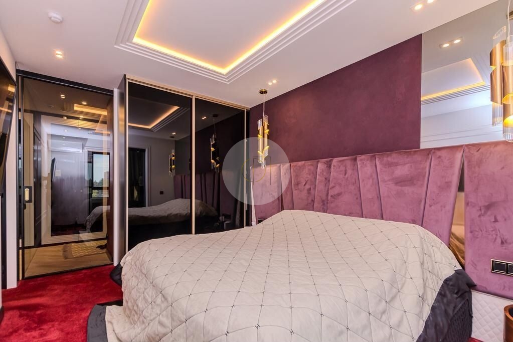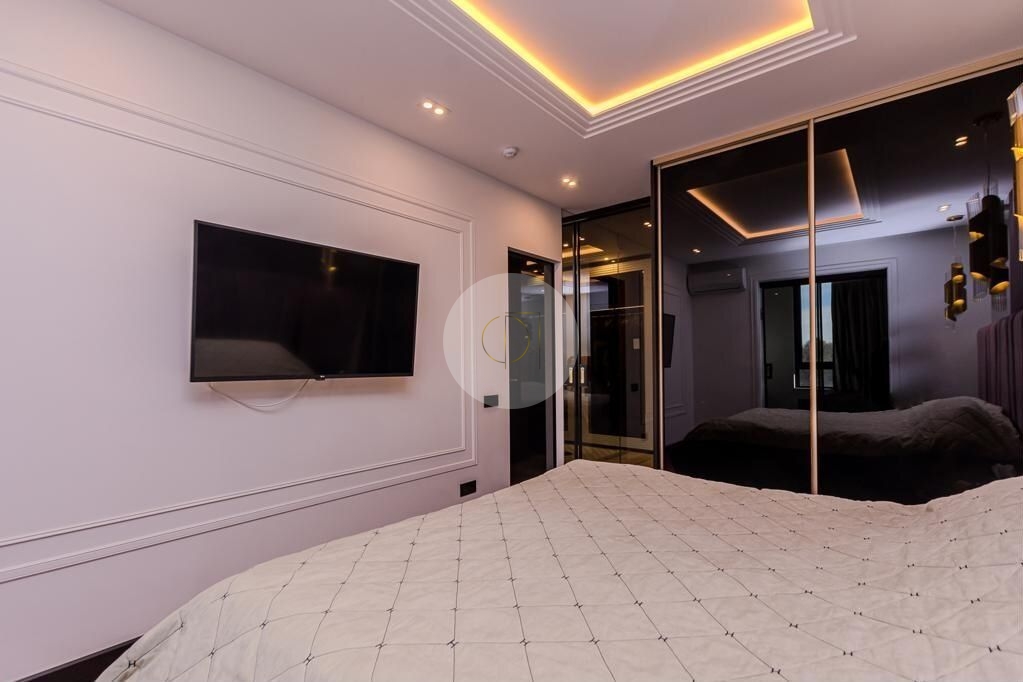 Закрытая территория комплекса. Подземный паркинг с возможностью спуска на лифте. Квартира расположена на 3 этаже. Планировка: общ. S=85 кв.м, 2 изолированных комнаты и кухня-гостиная, с/у, просторная витражная лоджия. Высота потолков 2,80 м. Состояние квартиры - дизайнерский ремонт и полная мебелировка.