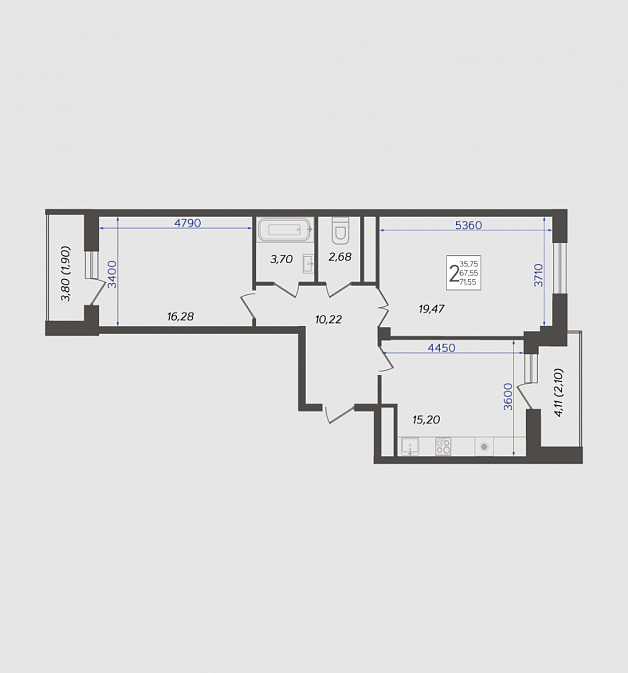 Продается 2-х комн. квартира, 71 кв.м., 12/16 эт