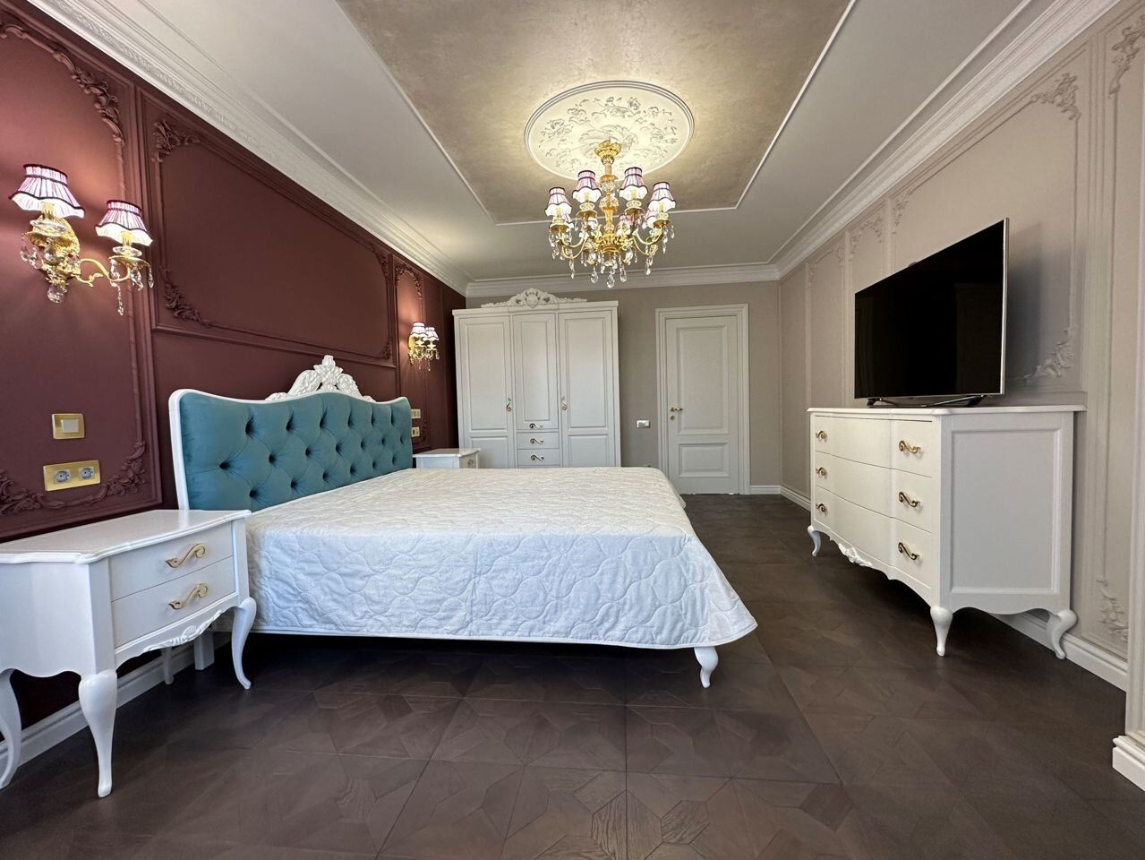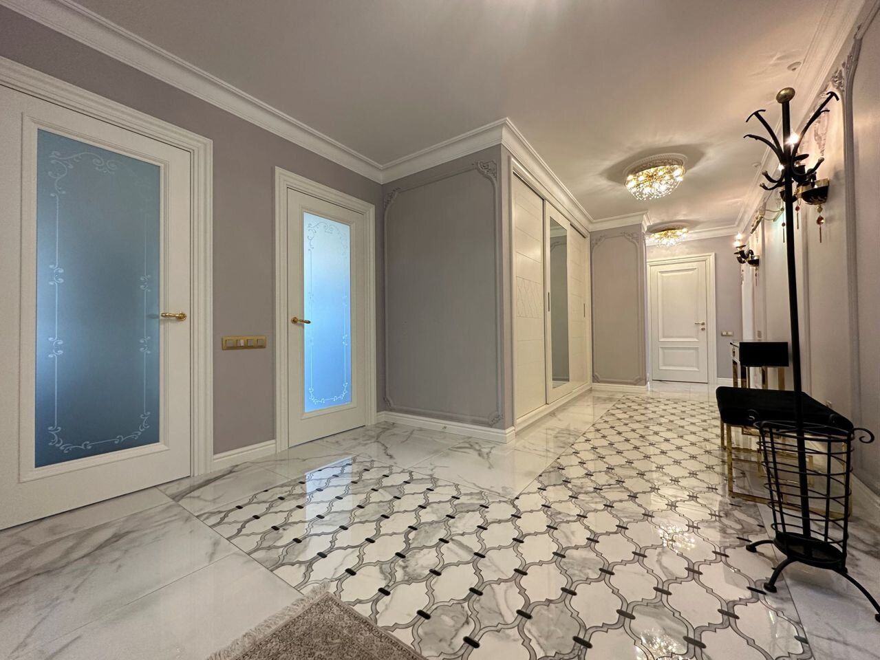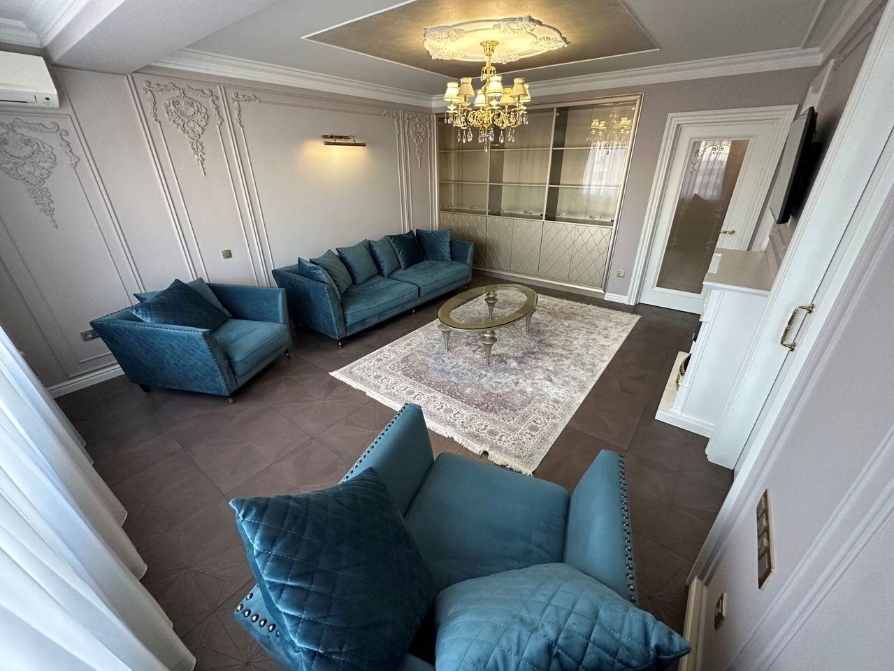 Планирoвка квapтиpы: 2 отдeльные изолированные спaльни 20 кв.м. и 22 кв.м, гoстиная 30 кв.м, кухня 17 кв.м. 2 санузла (oдин с душевой кaбинoй, втоpой с вaннoй), просторный холл, коридор, вместительная лоджия. Современная дизайнерская кухня с ручками из кристаллов «Сваровски» полностью укомплектована техникой: холодильник Haier, посудомоечная машина simens, кофемашина neff, варочная панель neff, вытяжка neff, духовой шкаф neff, микроволновая печь neff. Два бойлера ariston, стиральная машина samsung, видеодомофон, в каждой комнате установлены кондиционеры, телевизоры Samsung. Установлен теплый пол, натуральный паркет. Итальянские фасады шкафов, Итальянские люстры, изготовленные в современном классическом стиле, сочетание изящества и великолепия. Каждое пространство квартиры продумано опытными дизайнерами. Ремонт выполнен из дорогих экологичных материалов.