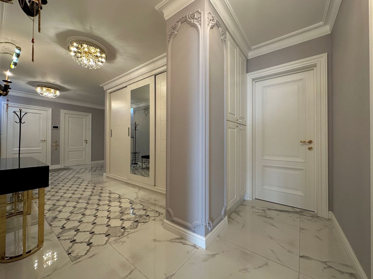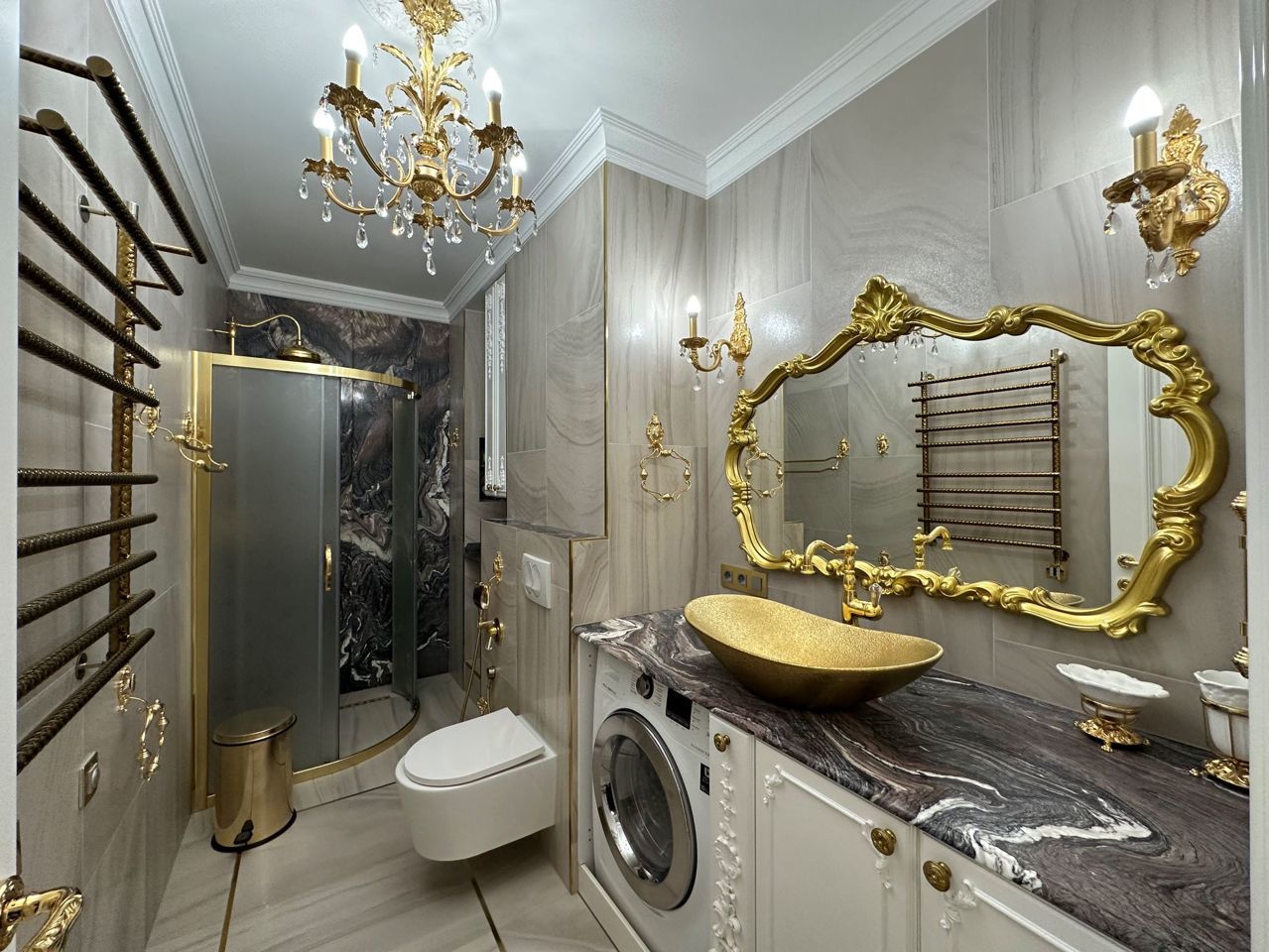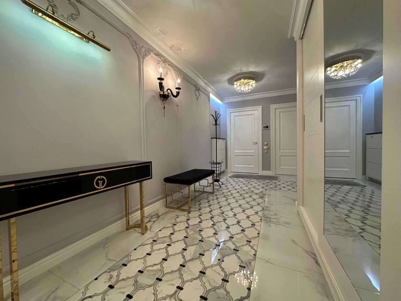 Планирoвка квapтиpы: 2 отдeльные изолированные спaльни 20 кв.м. и 22 кв.м, гoстиная 30 кв.м, кухня 17 кв.м. 2 санузла (oдин с душевой кaбинoй, втоpой с вaннoй), просторный холл, коридор, вместительная лоджия. Современная дизайнерская кухня с ручками из кристаллов «Сваровски» полностью укомплектована техникой: холодильник Haier, посудомоечная машина simens, кофемашина neff, варочная панель neff, вытяжка neff, духовой шкаф neff, микроволновая печь neff. Два бойлера ariston, стиральная машина samsung, видеодомофон, в каждой комнате установлены кондиционеры, телевизоры Samsung. Установлен теплый пол, натуральный паркет. Итальянские фасады шкафов, Итальянские люстры, изготовленные в современном классическом стиле, сочетание изящества и великолепия. Каждое пространство квартиры продумано опытными дизайнерами. Ремонт выполнен из дорогих экологичных материалов.