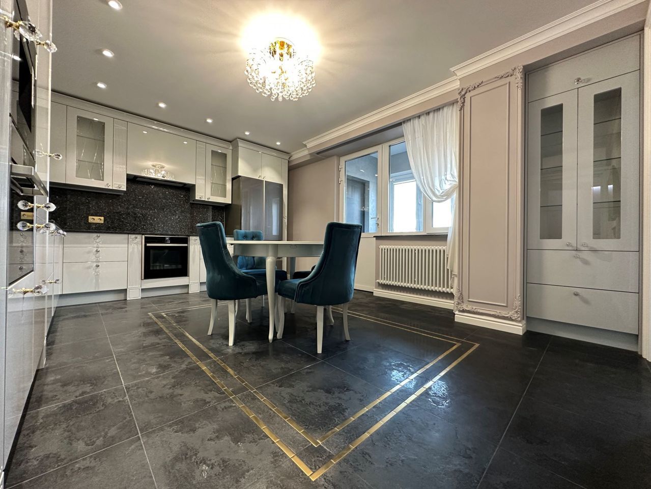 Квартира расположена на 14 этаже. Из окон открываются потрясающие виды на историческую часть города. Планировка: общ. S=129 кв.м, 2 изолированные комнаты и кухня-гостиная, 2 с/у, просторная витражная лоджия. Высота потолков 2,85 м. Состояние квартиры - Квартира укомплектована всей необходимой техникой и мебелью.