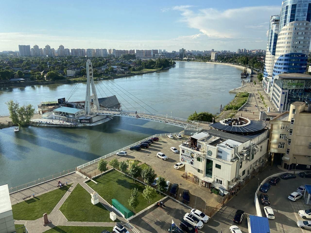 ЖК АДМИРАЛ на улице Кубанская набережная. Комплекс расположен на берегу реки Кубань.