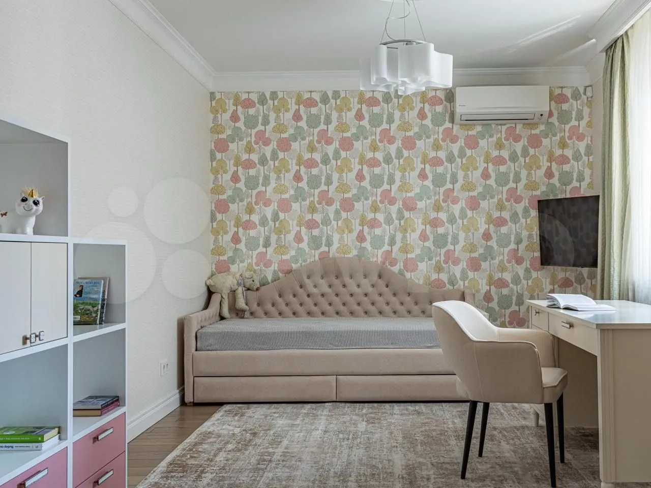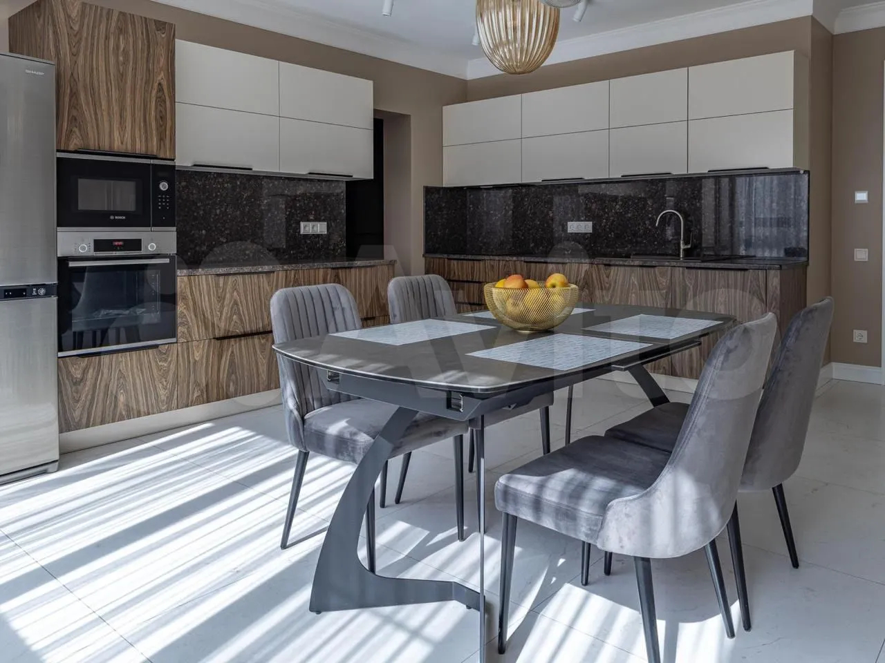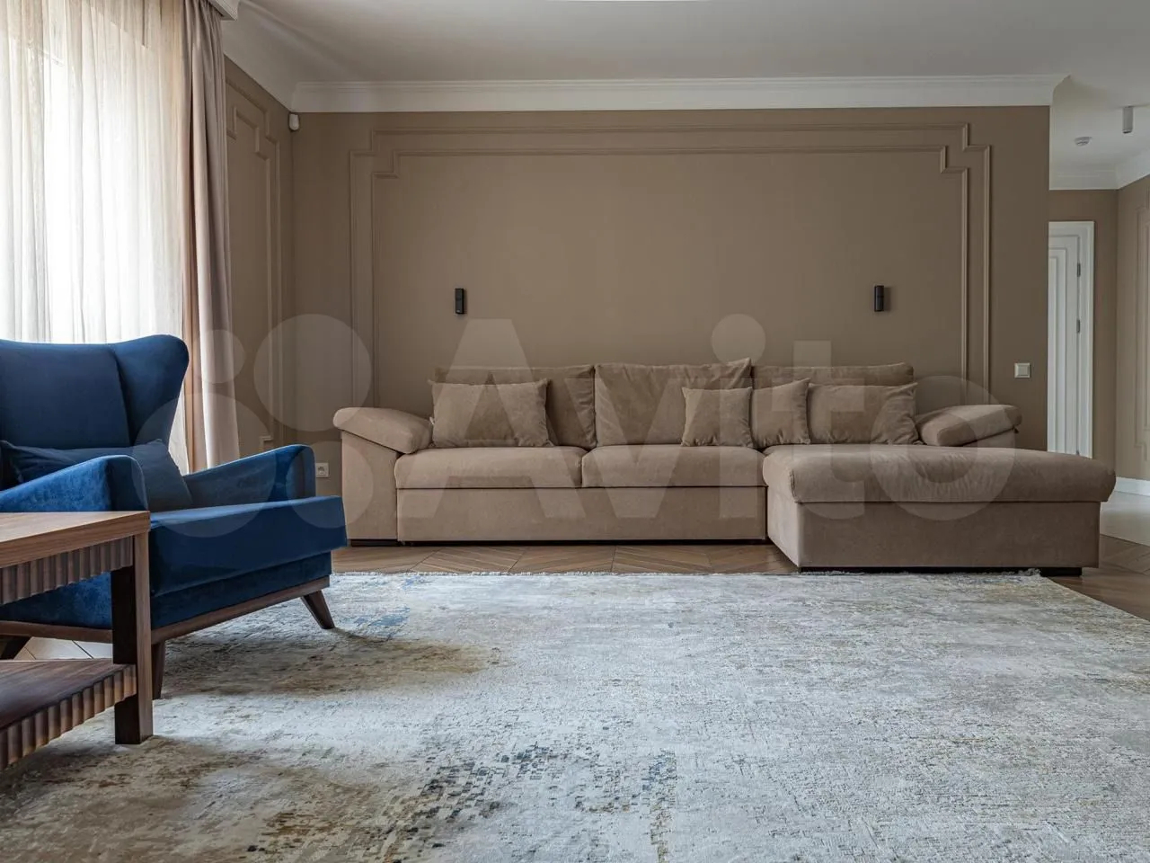 Площадь квартиры составляет 180 квадратных метров.Просторные окна создают ощущение света и пространства в каждой комнате. Из окон открывается прекрасный вид на улицу и во двор.
