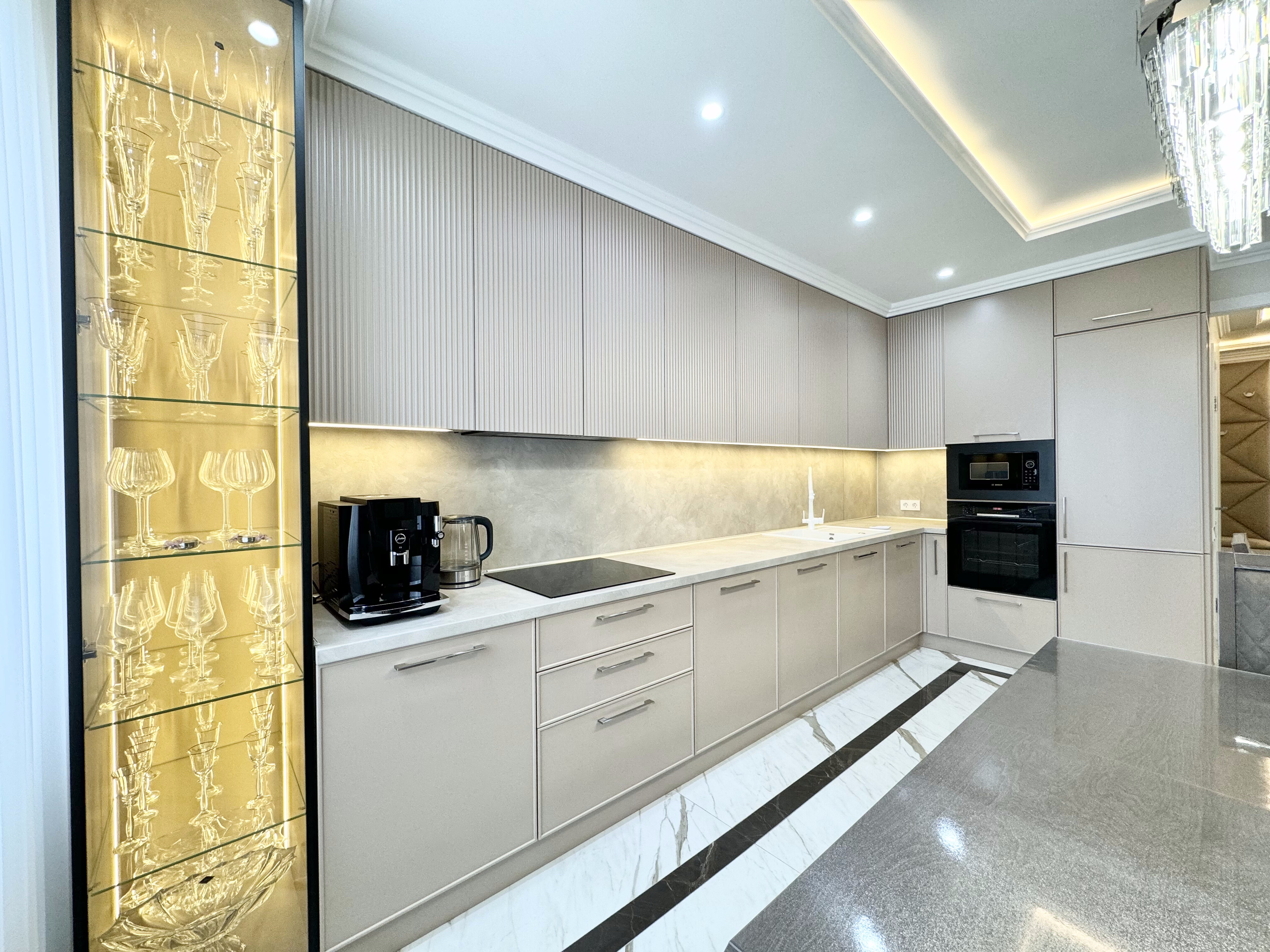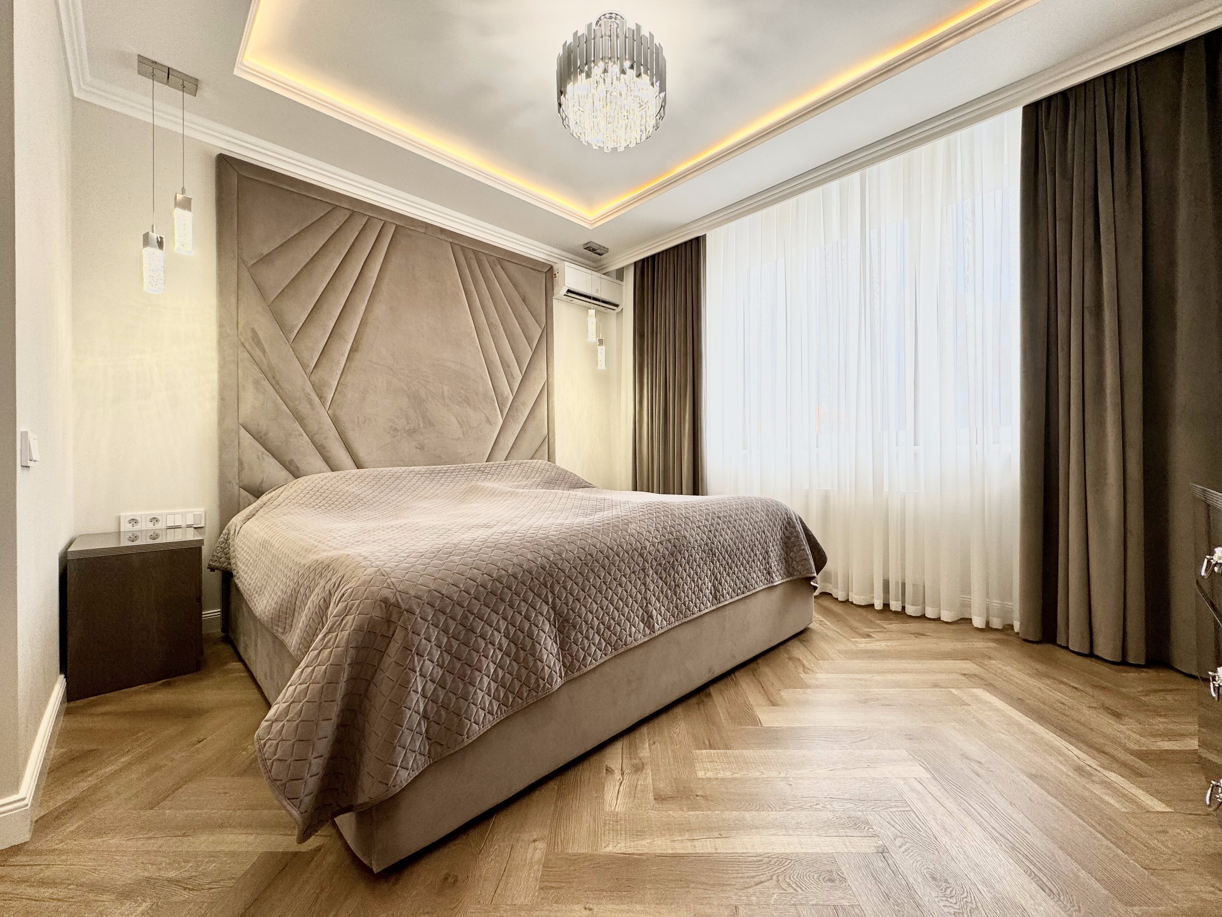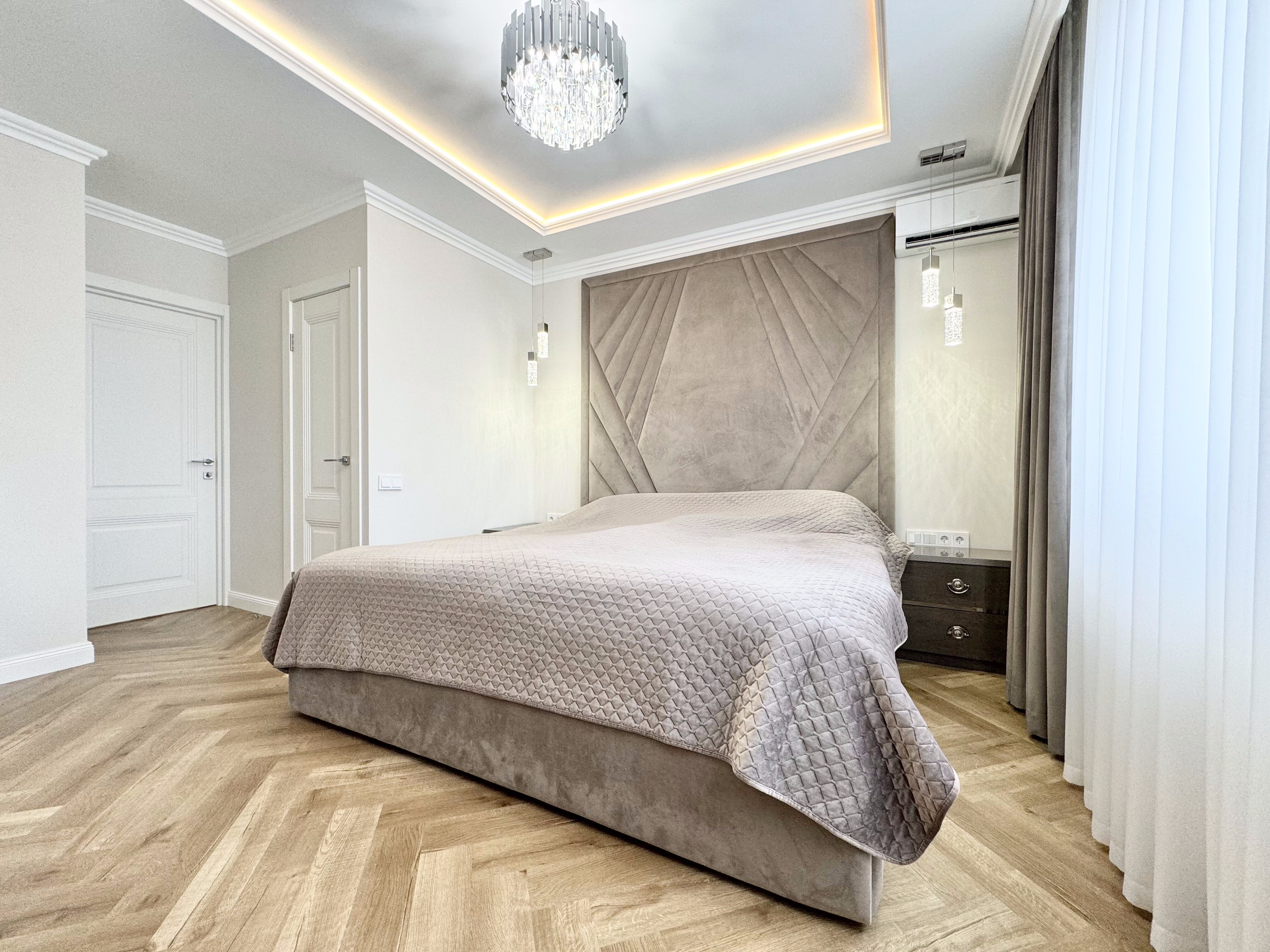 В квартире сделана полная шумоизоляция (потолки, стены ). Техника встроенная Воsсh Мебель в спальне Италия.