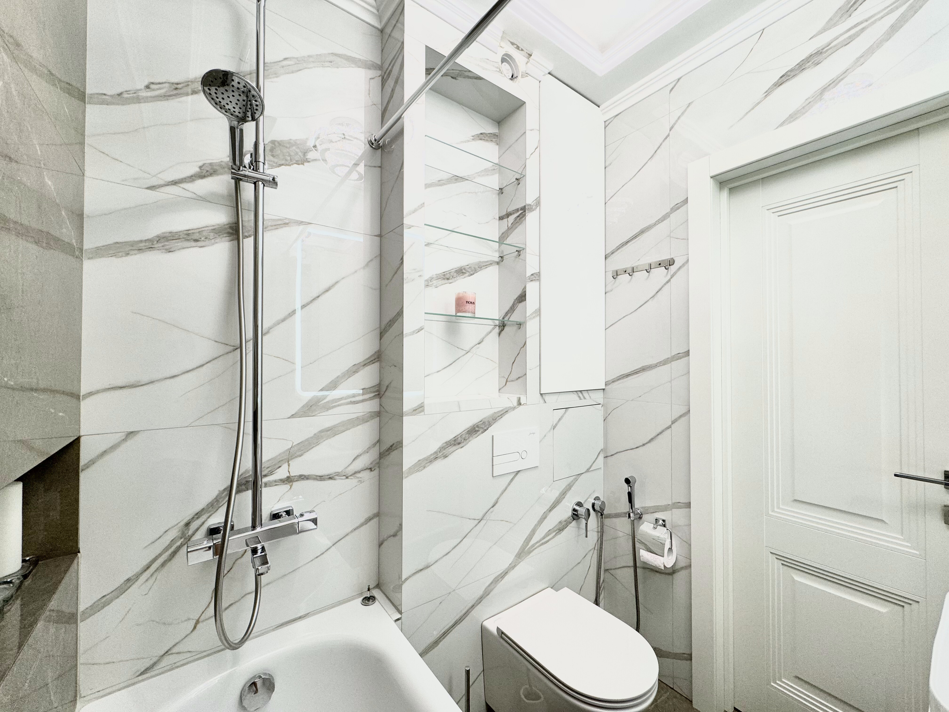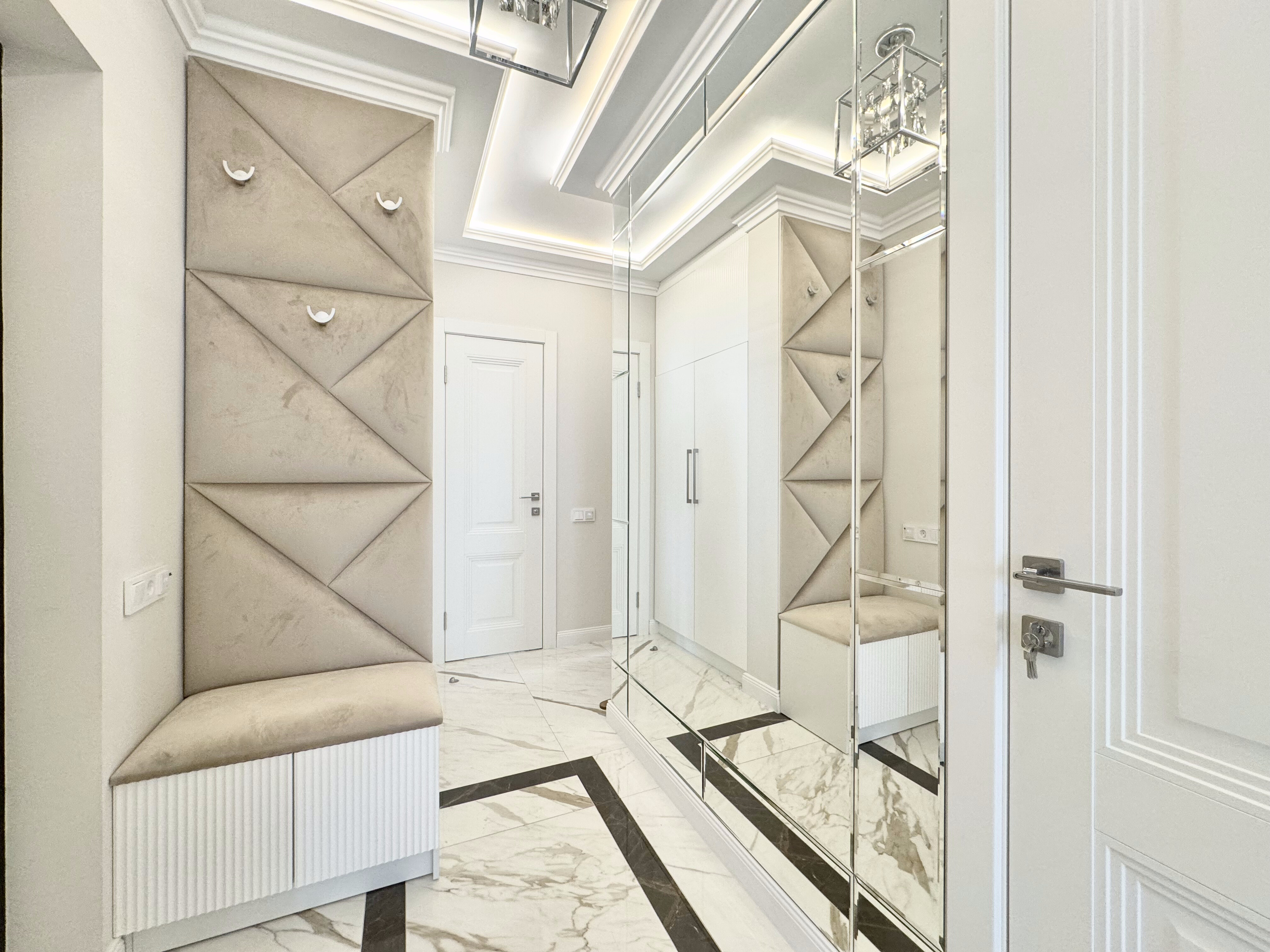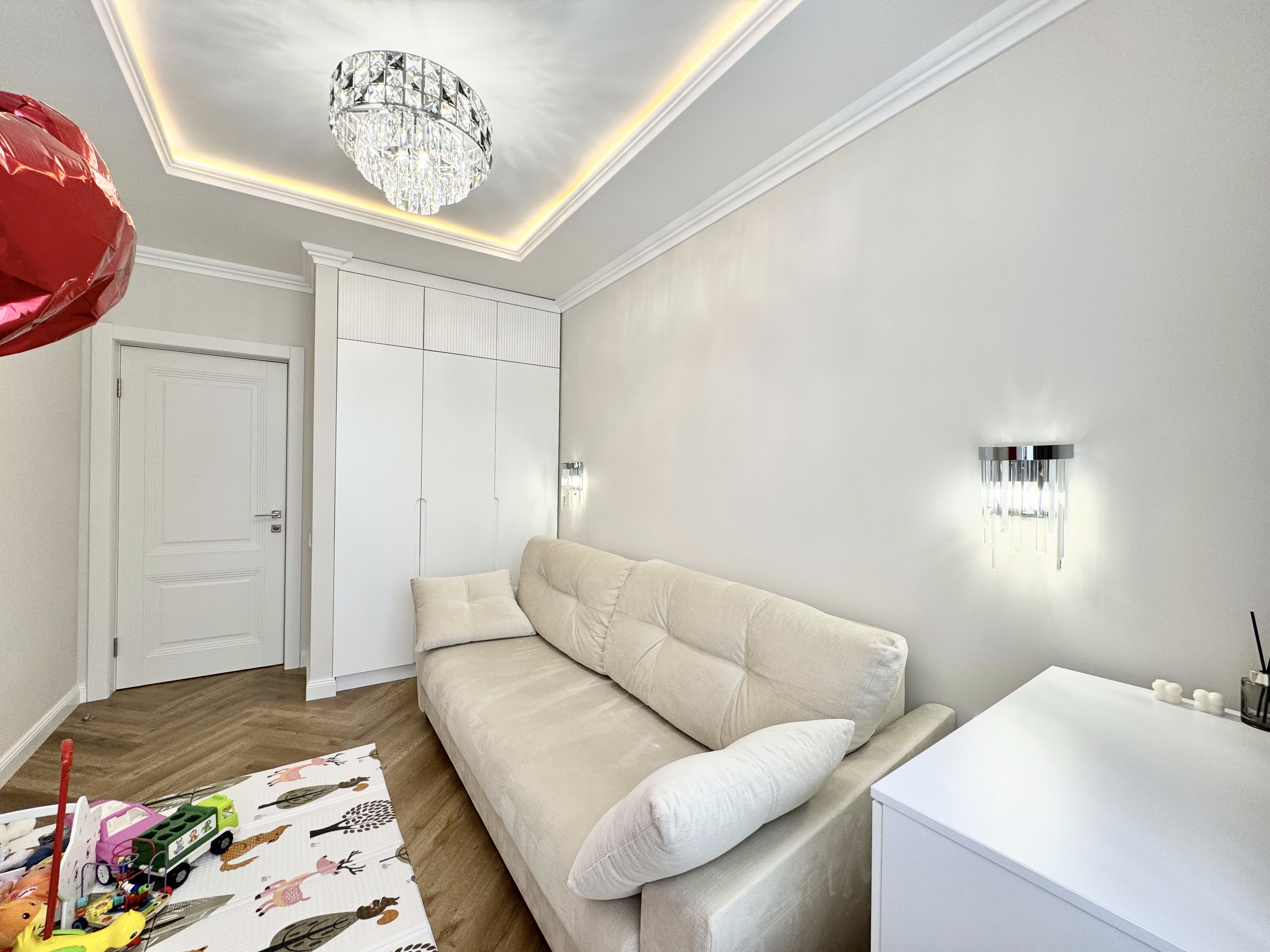 В квартире сделана полная шумоизоляция (потолки, стены ). Техника встроенная Воsсh Мебель в спальне Италия.