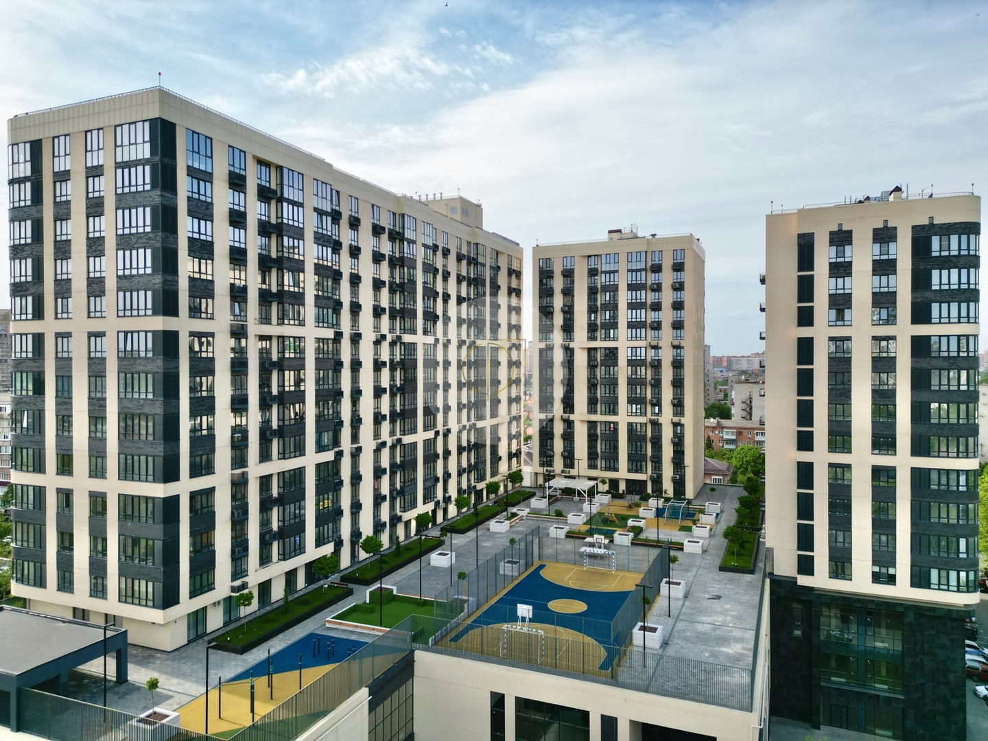 Развитая инфраструктура: кафе, рестораны, фитнес клубы, торговые центры, лучшие клиники в городе, супермаркеты, магазины, аптеки, прогулочные зоны, двор, оборудованный детскими площадками, подземный и наземный паркинги, консьерж и охрана, камеры видеонаблюдения.