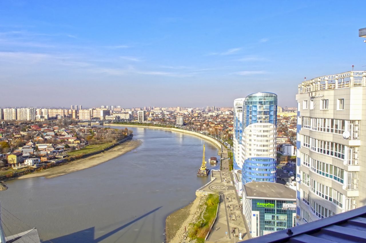 Квартира расположена на 21 этаже. Из окон открываются потрясающие виды на историческую часть города и реку Кубань. Планировка: общ. S=250 кв.м, 5 комнат несколько с/у, просторная витражная лоджия, утепленная терраса. Высота потолков 3 м. Состояние квартиры - дизайнерский ремонт Единственное предложение в данном доме с видом на реку Кубань!