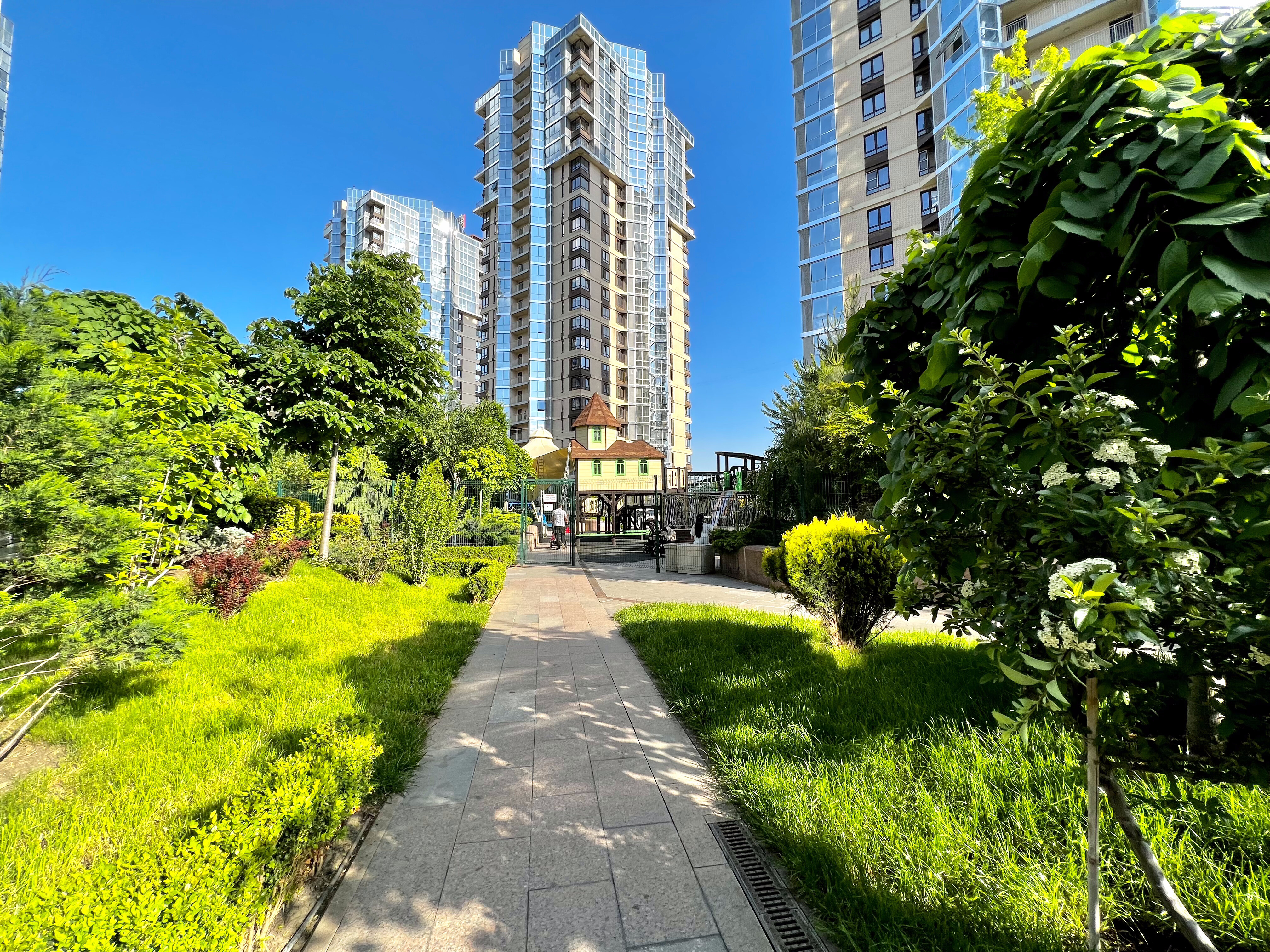 Развитая инфраструктура: кафе, рестораны, фитнес клубы, торговые центры, лучшие клиники в городе, супермаркеты, магазины, аптеки, прогулочные зоны, двор, оборудованный детскими площадками, подземный и наземный паркинг, консьерж и охрана, камеры видео-наблюдения.