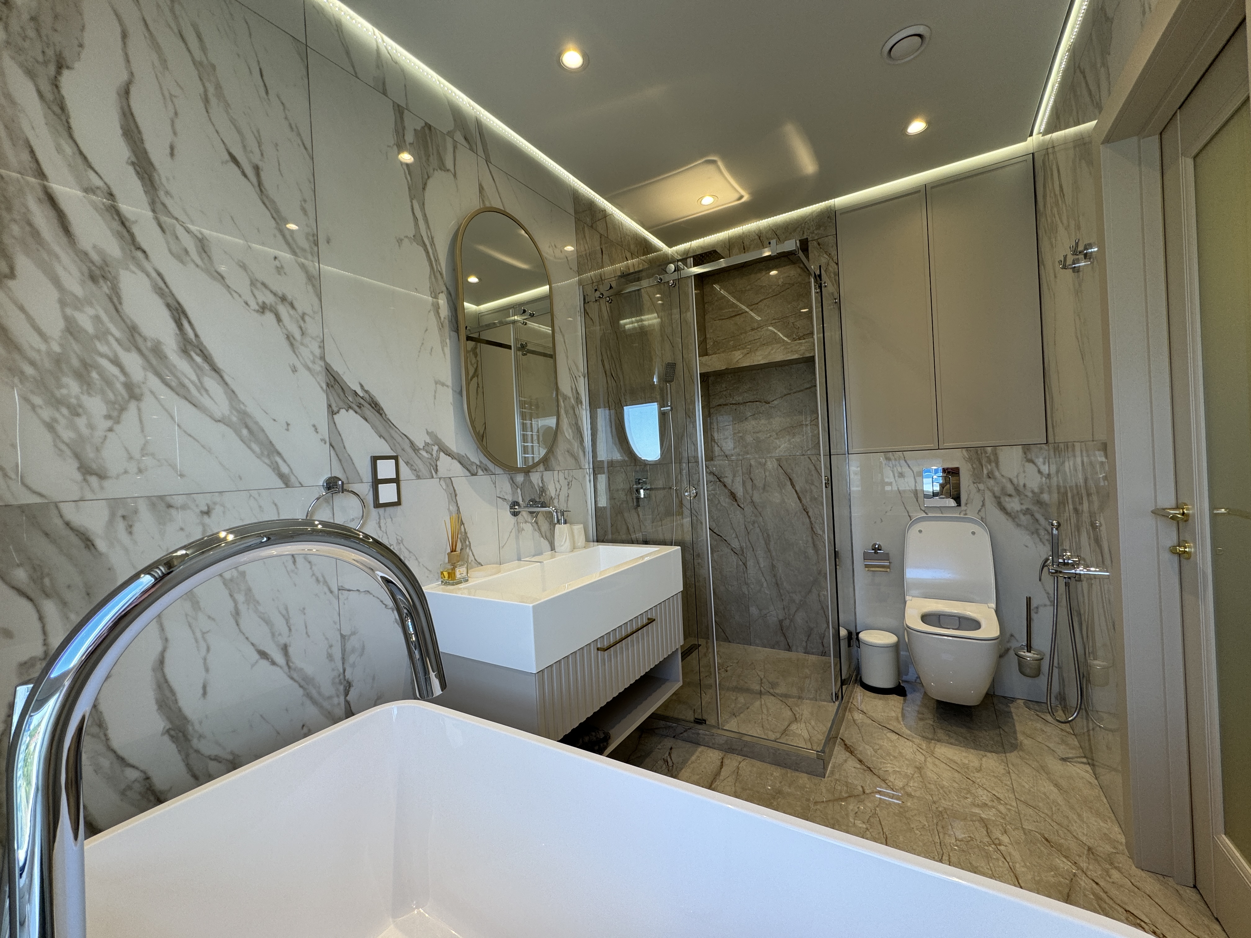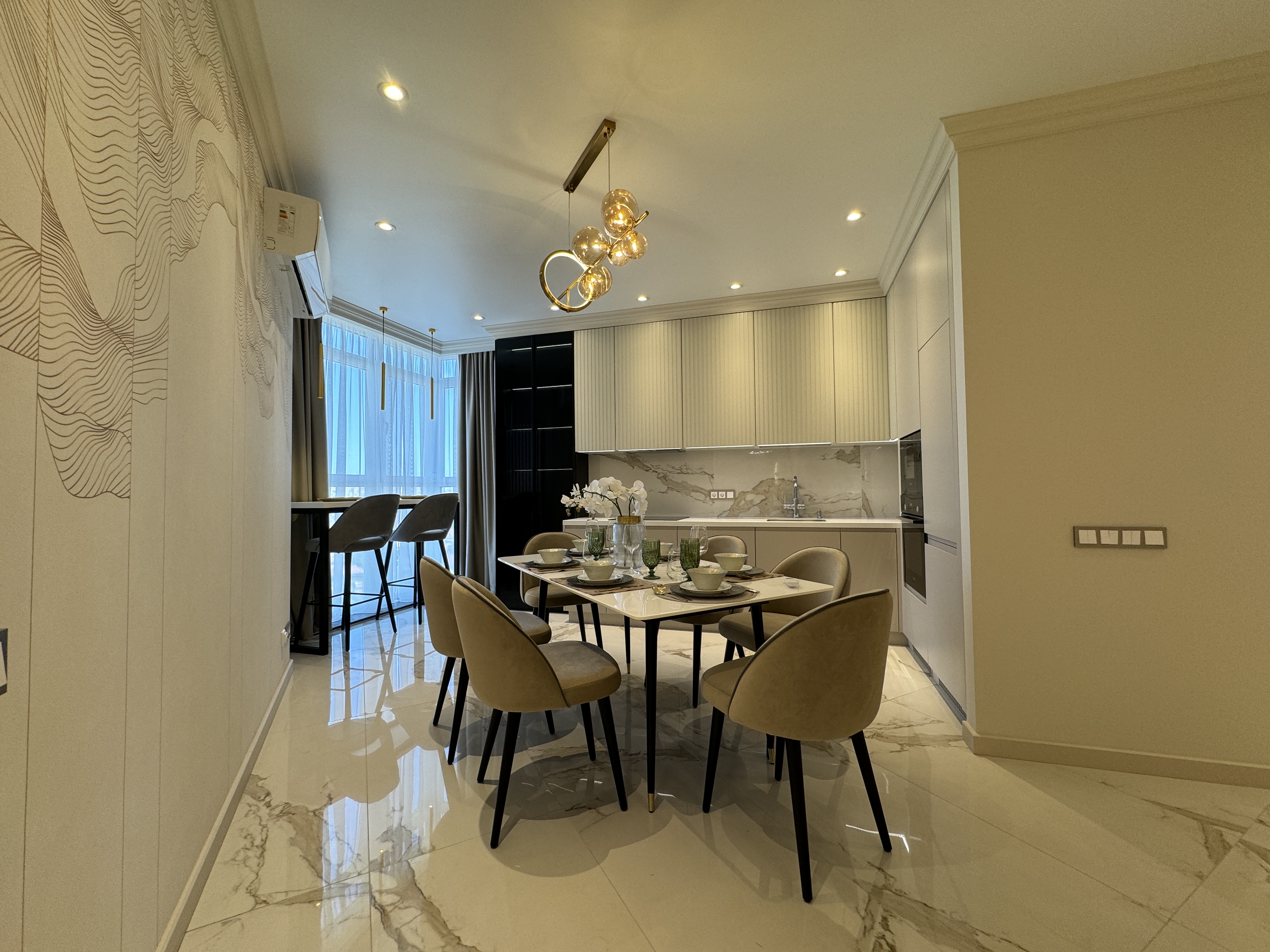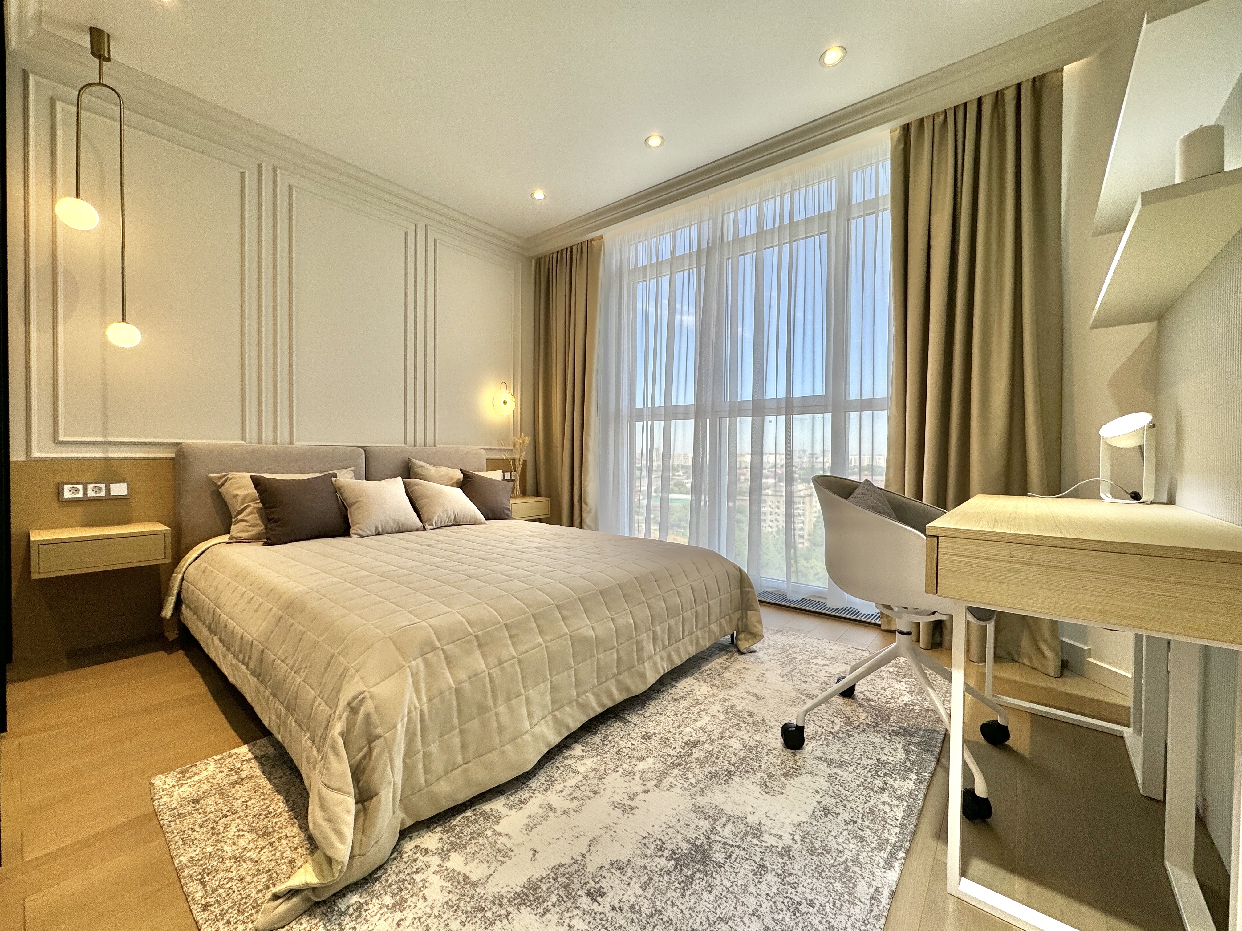 Развитая инфраструктура: кафе, рестораны, фитнес клубы, торговые центры, лучшие клиники в городе, супермаркеты, магазины, аптеки, прогулочные зоны, двор, оборудованный детскими площадками, подземный и наземный паркинги, консьерж и охрана, камеры видеонаблюдения.