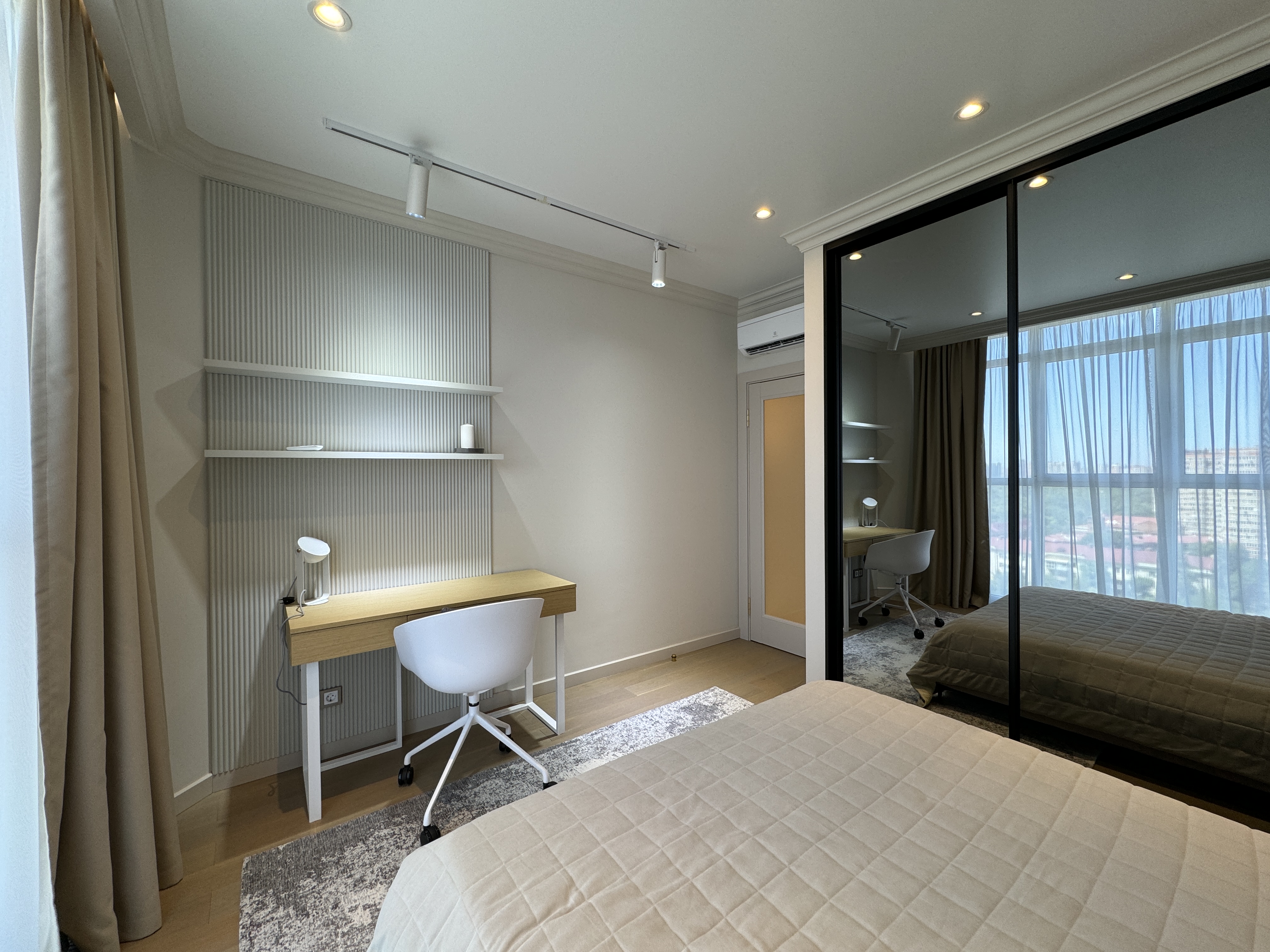 Закрытая территория комплекса. Подземный паркинг с возможностью спуска на лифте. Квартира расположена на 15 этаже. Планировка: общ. S= 112 кв.м, 3 изолированные комнаты и кухня-гостиная, 2 с/у, кабинет. Высота потолков 2,80 м. Состояние квартиры - квартира с дорогим, качественным ремонтом, техникой, мебель, текстилем, а так же предметы декора и интерьера.