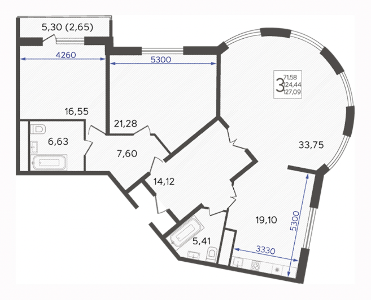 Закрытая территория комплекса. Квартира расположена на 10 этаже. Планировка: общ. S=130 кв.м, 3 изолированные комнаты и кухня-гостиная, с/у, просторная витражная лоджия. Высота потолков 2,80 м. Состояние квартиры - предчистовая отделка от застройщика.