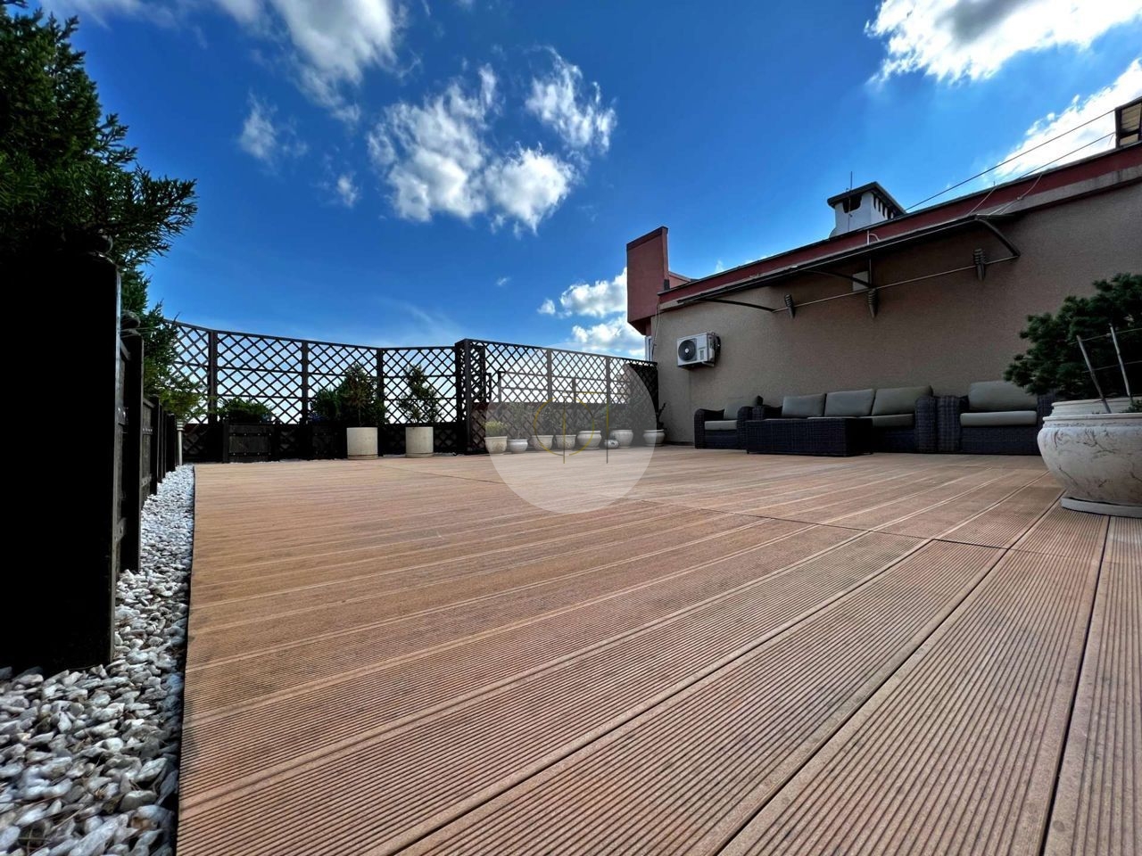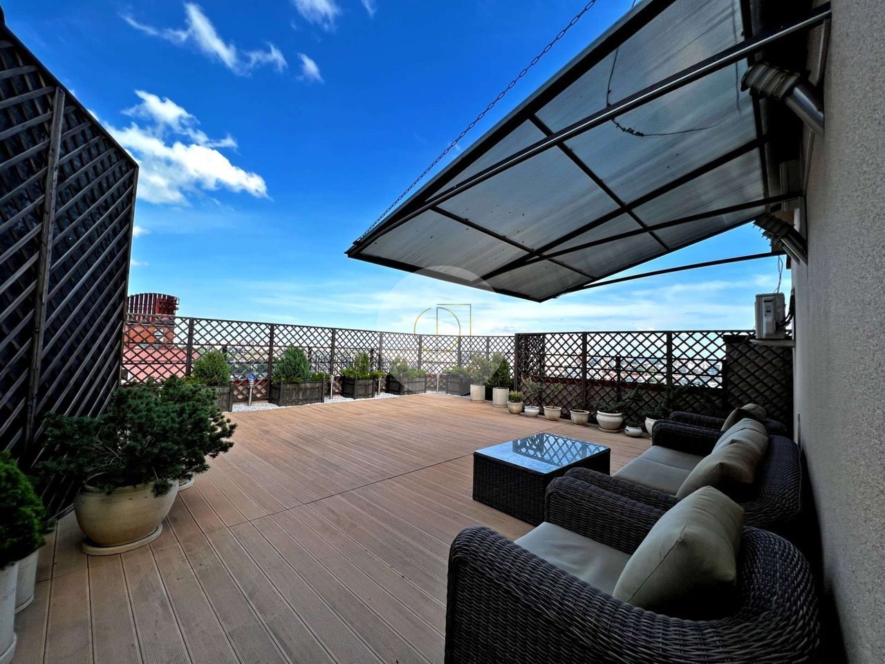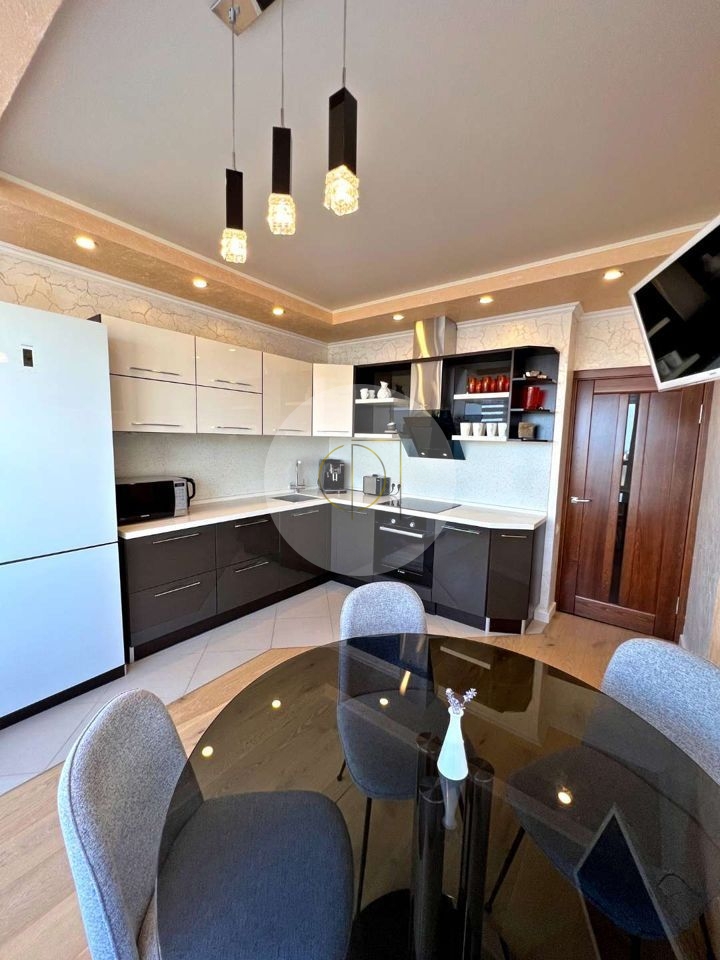 Закрытая территория комплекса. Подземный паркинг с возможностью спуска на лифте. Квартира расположена на 23 и 24 этаже. Планировка: общ. S=165,9 кв.м, + 160 кв.м. терасса, 4 изолированные комнаты и кухня-гостиная, с/у, просторная витражная лоджия. Высота потолков 2,80 м. Состояние квартиры - в квартире сделан ремонт, остается мебель и техника.
