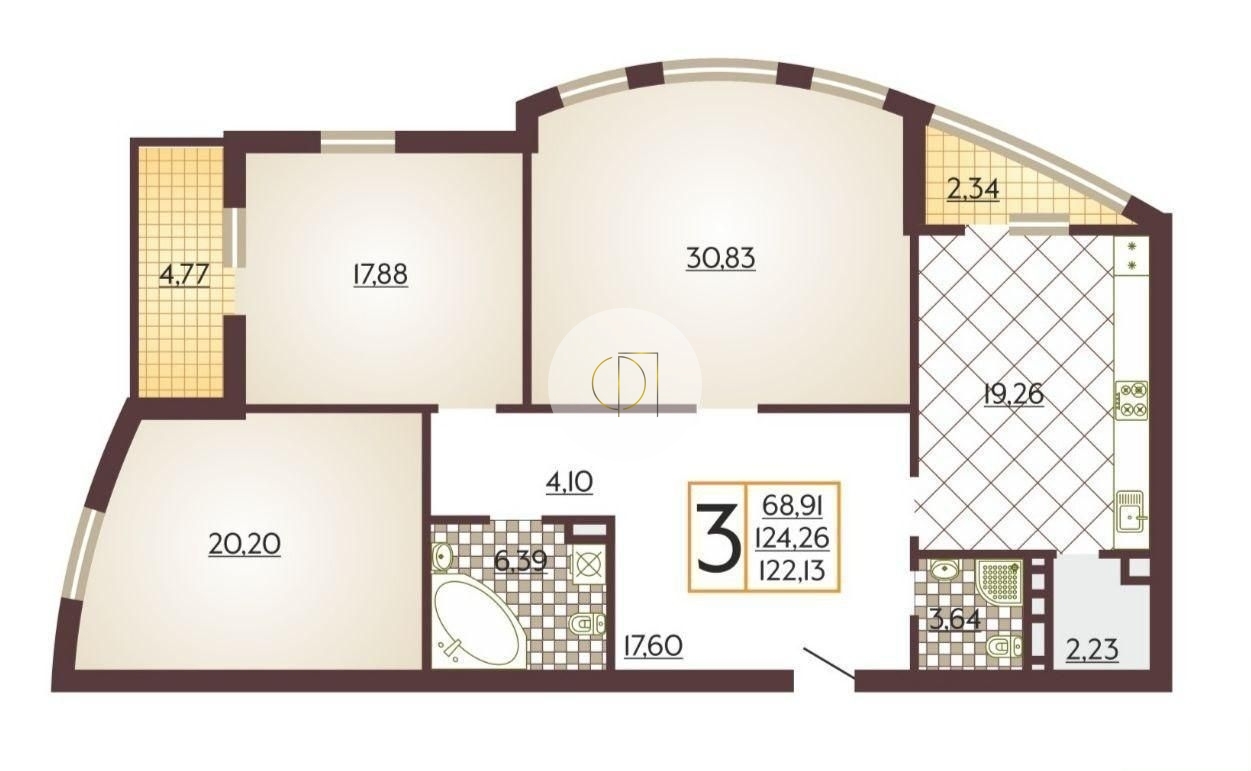 Квартира расположена на 10 этаже. Планировка: общ. S=122 кв. м, 3 изолированные комнаты и кухня, 2 с/у, просторный балкон. Высота потолков 2.8 м. Состояние квартиры: предчистовая отделка от застройщика. Единственное предложение в данном доме без ремонта.
