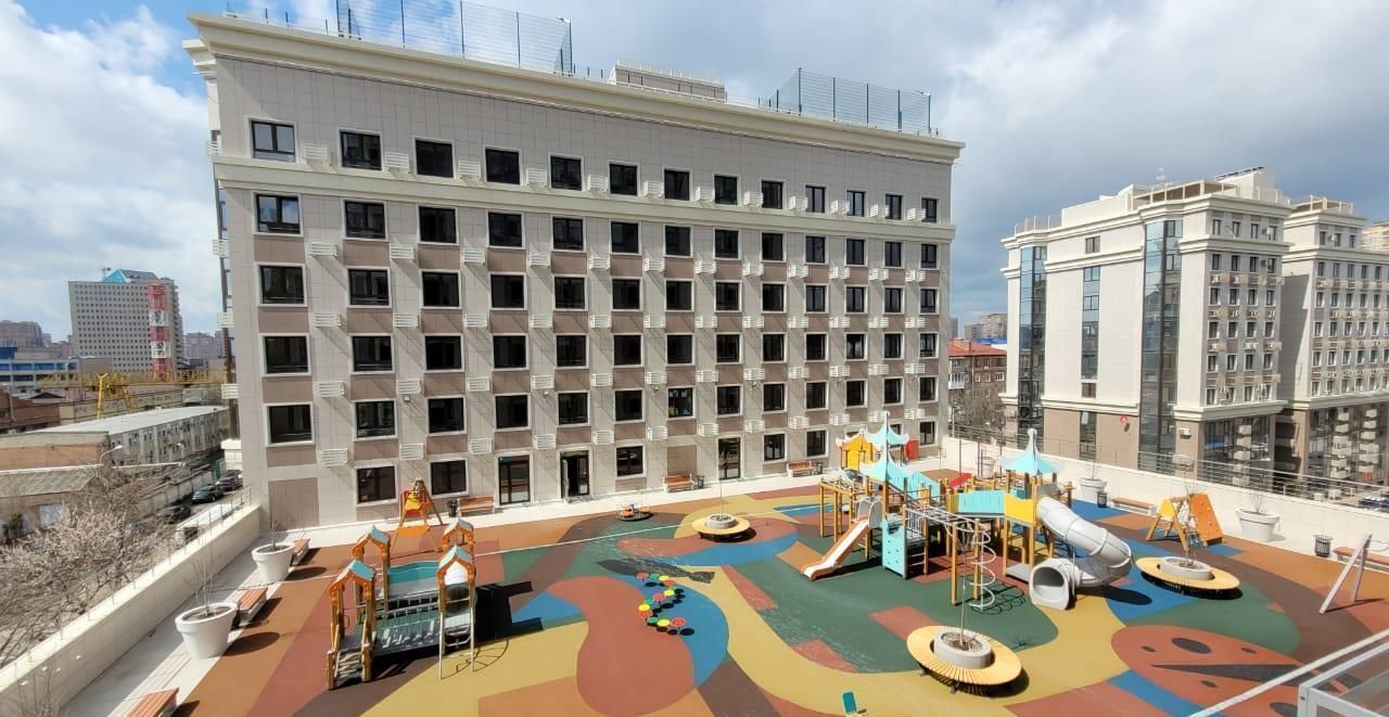 Развитая инфраструктура: кафе, рестораны, фитнес клубы, торговые центры, лучшие клиники в городе, супермаркеты, магазины, аптеки, прогулочные зоны, двор, оборудованный детскими площадками, подземный и наземный паркинги, консьерж и охрана, камеры видеонаблюдения.