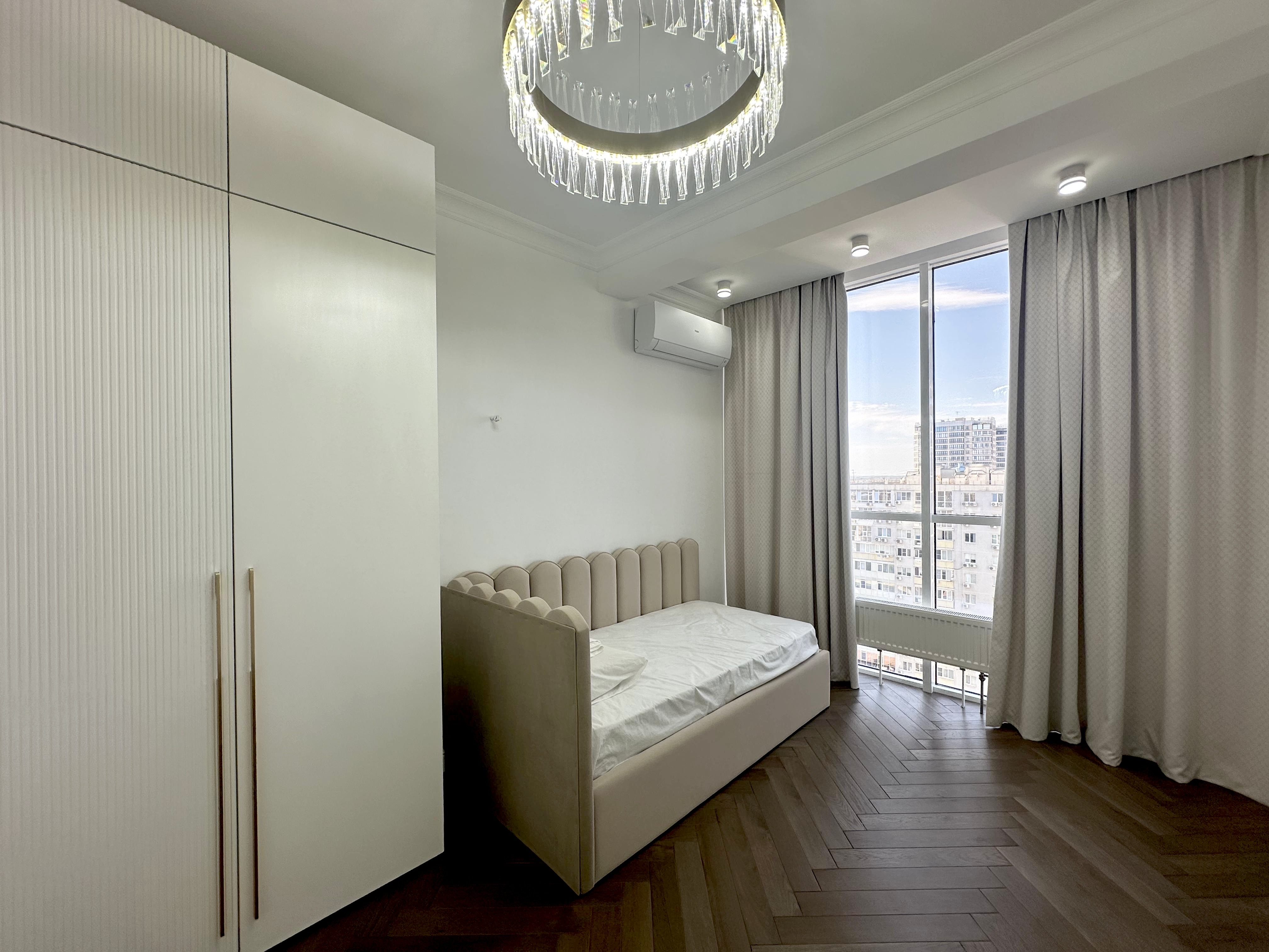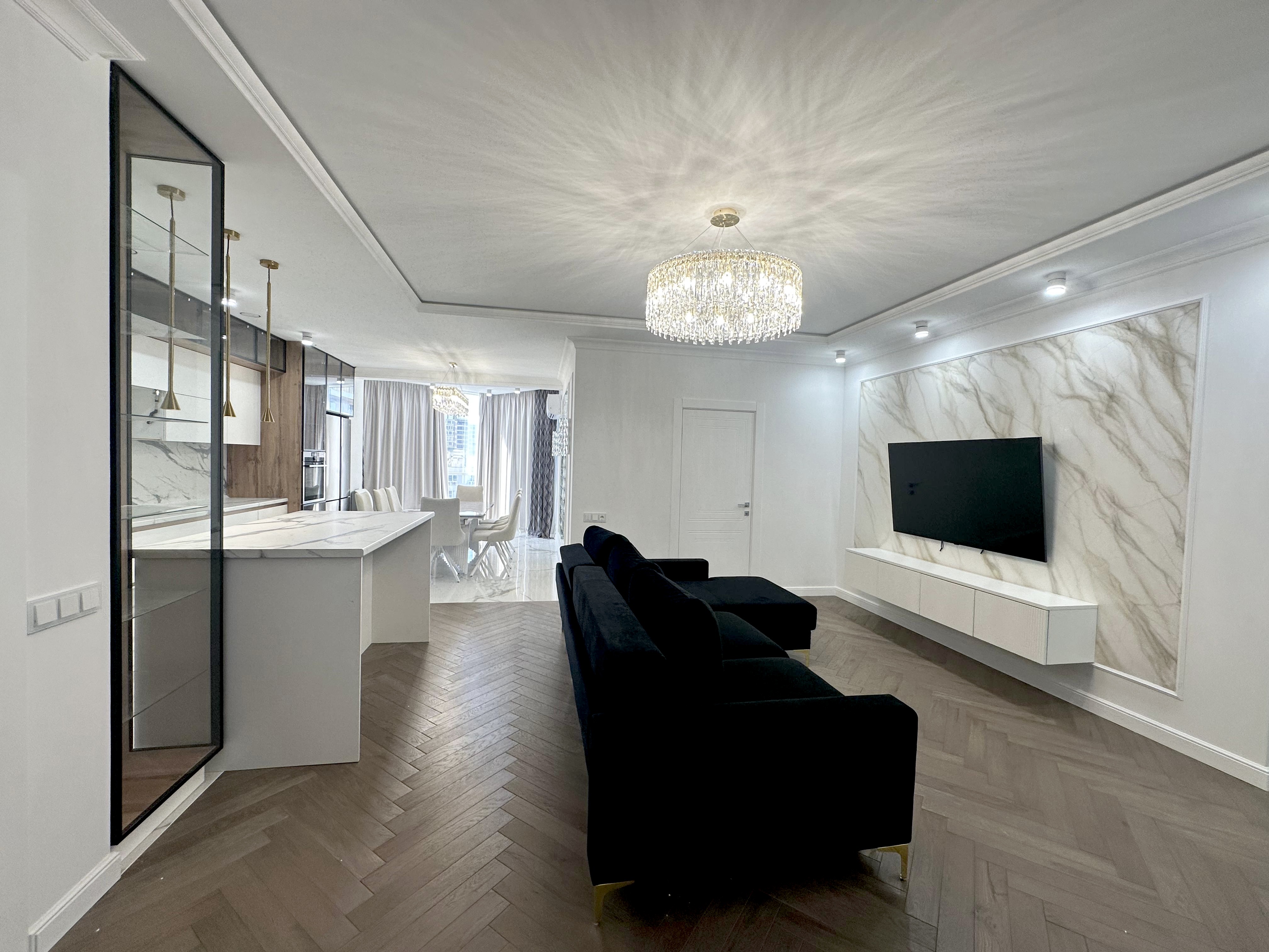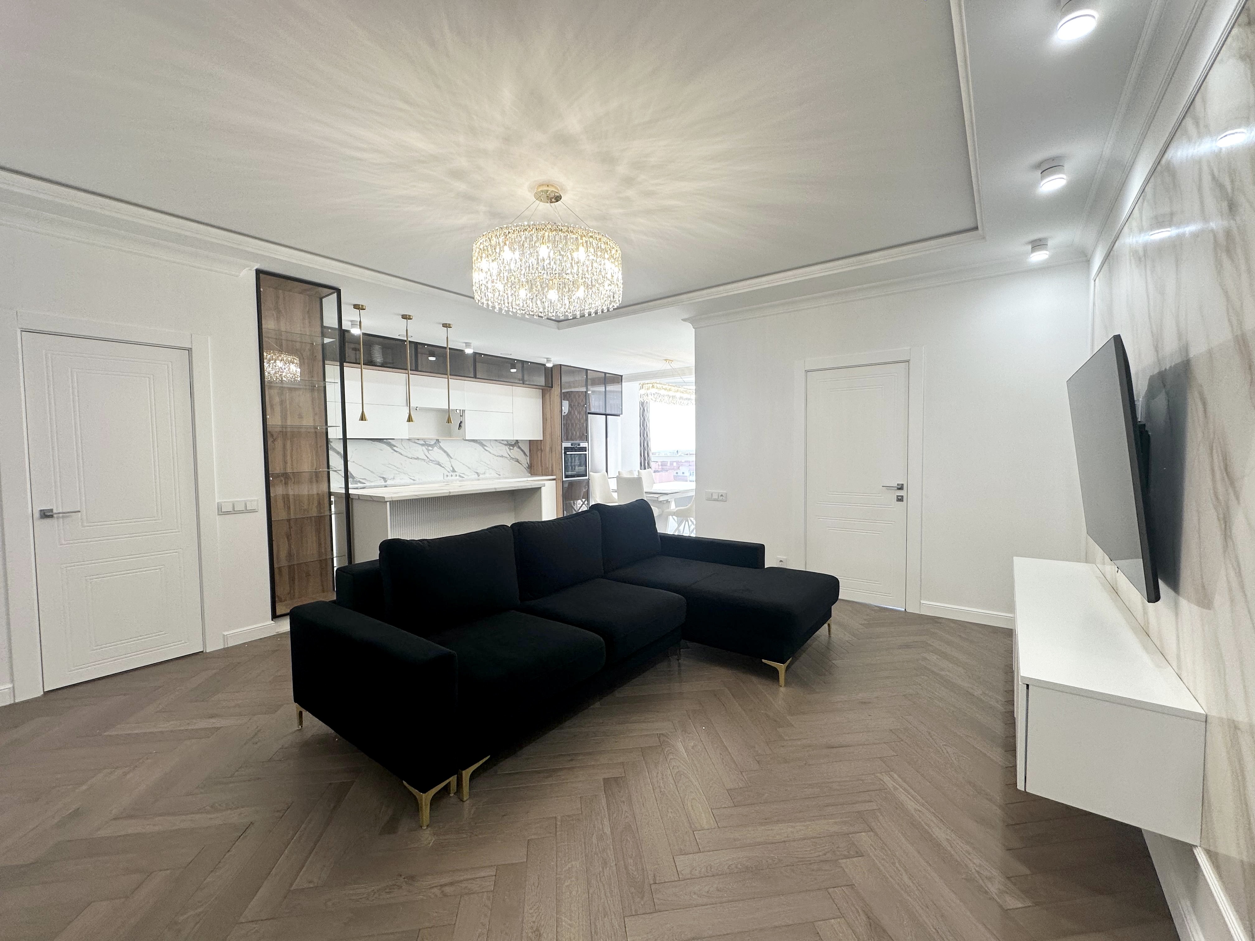 Закрытая территория комплекса. Подземный паркинг с возможностью спуска на лифте. Квартира расположена на 17 этаже. Планировка: общ. S=135 кв. м, 3 изолированные комнаты и кухня-гостиная, с/у, просторная витражная лоджия, гардеробная комната. Высота потолков 2,80 м. Состояние квартиры - в квартире выполнен дорогой, качественный ремонт. Никто не жил.