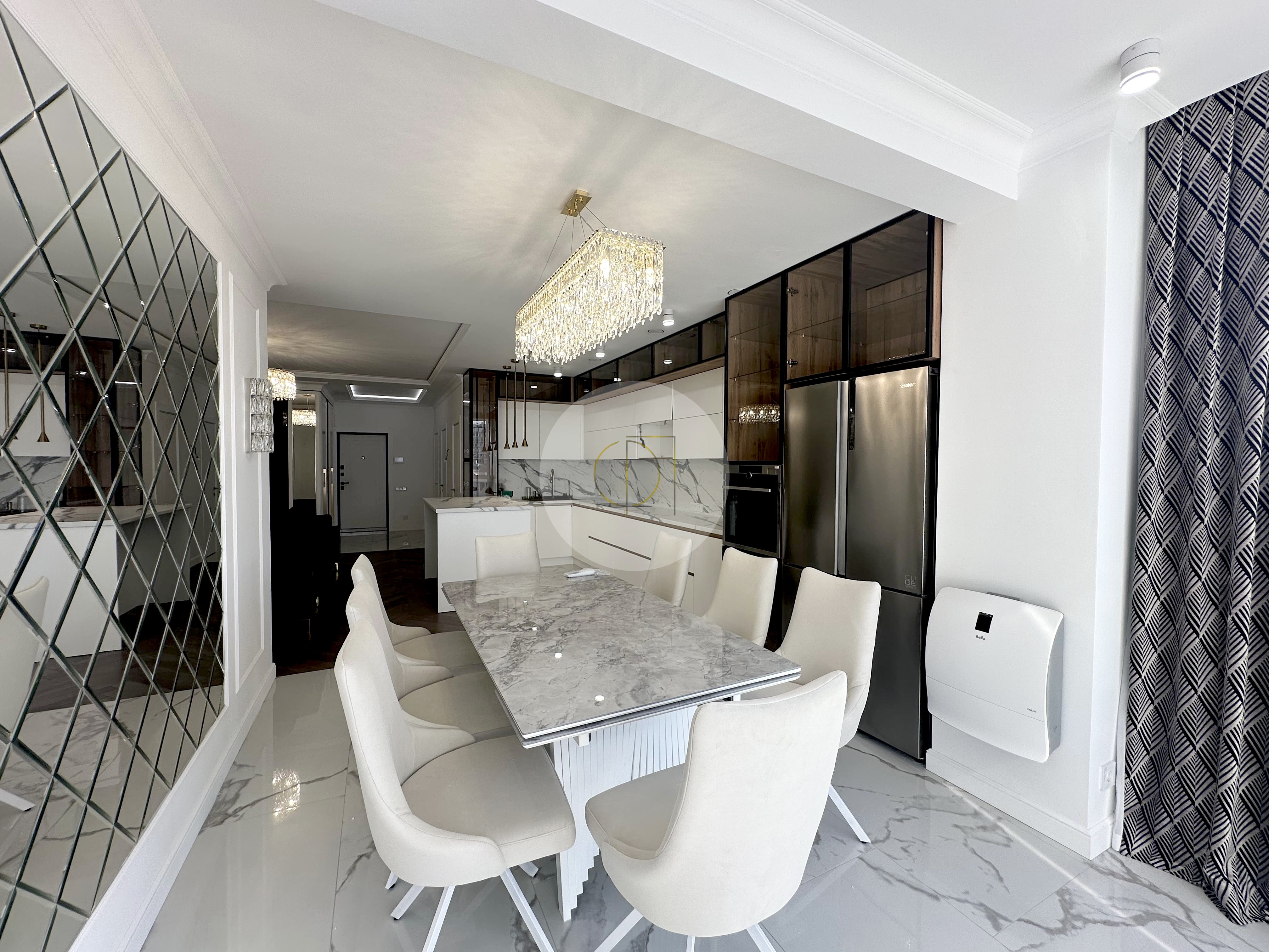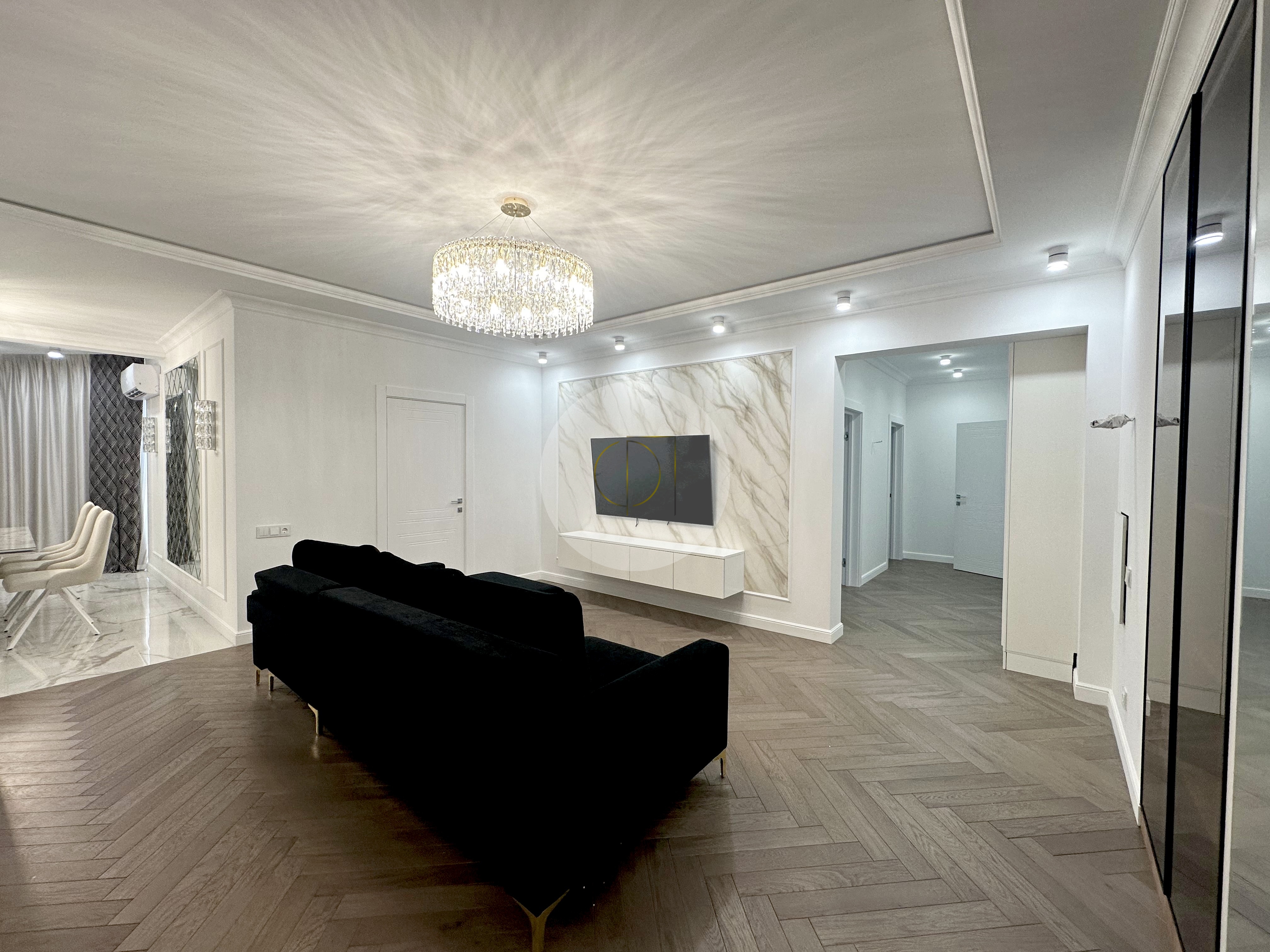 Квартира расположена на 17 этаже. Планировка: общ. S=135 кв. м, 3 изолированные комнаты и кухня-гостиная,2 с/у, просторная витражная лоджия, гардеробная комната. Высота потолков 2,80 м. Состояние квартиры - в квартире выполнен дорогой, качественный ремонт. Никто не жил.
