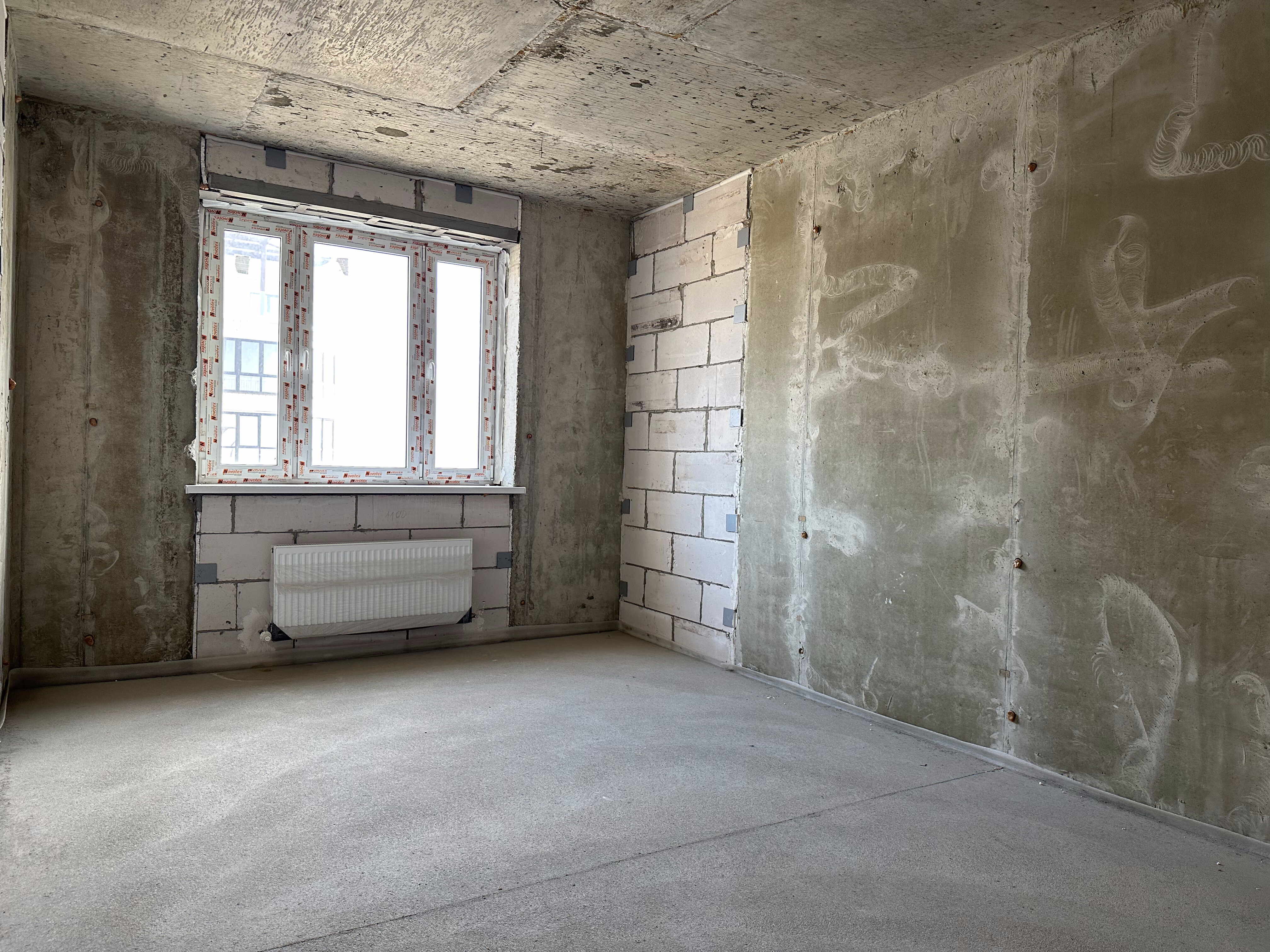 Квартира расположена на 22 этаже. Планировка: общ. S= 45 кв. м, 1 изолированная комната и кухня-гостиная, с/у, просторная лоджия. Высота потолков 2,80 м. Состояние квартиры - предчистовая отделка от застройщика.