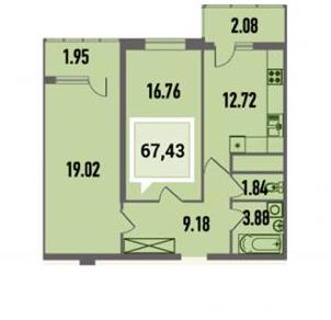 Закрытая территория комплекса. Подземный паркинг с возможностью спуска на лифте. Квартира расположена на 22 этаже. Планировка: общ. S=67,4 кв.м, 2 изолированные комнаты и кухня-гостиная, с/у,. Высота потолков 2,80 м. Состояние квартиры - предчистовая отделка от застройщика.
