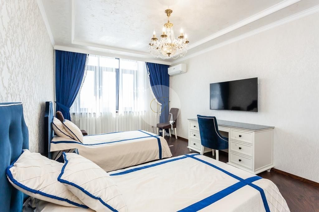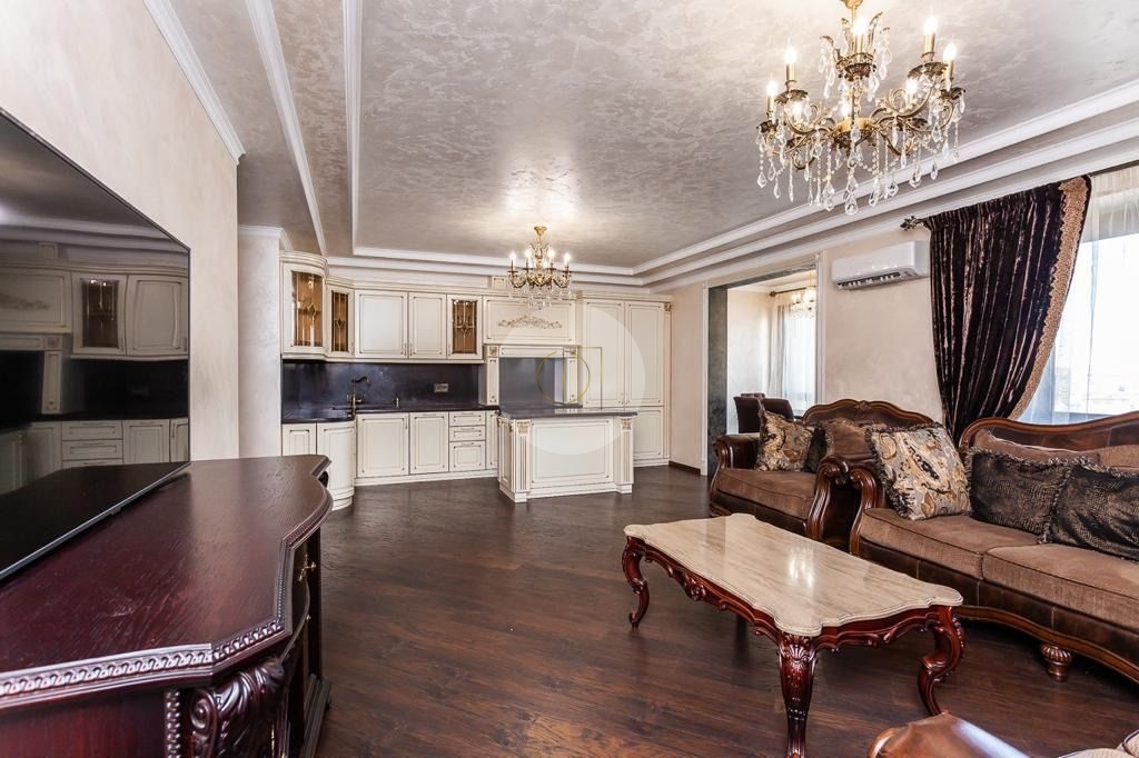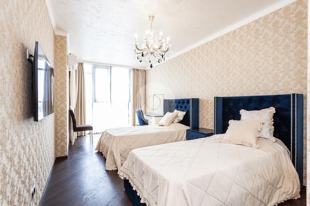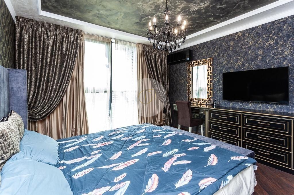 В квартире 2 полноценные с/у, гардеробная, 3 большие спальни, просторная гостиная совмещения с кухней.Сделан дорогой дизайнерский ремонт, с использованием дорогих и качественных материалов.