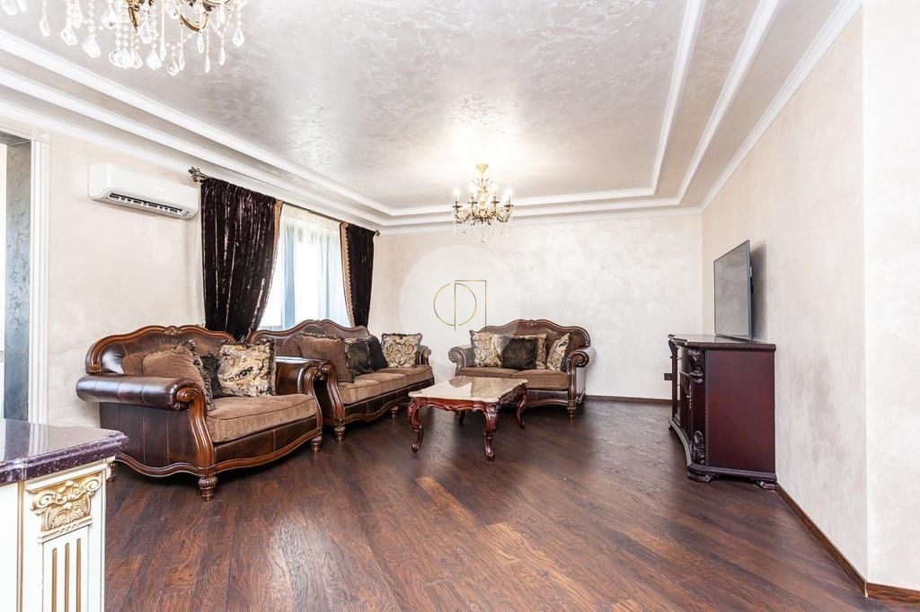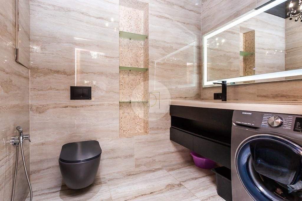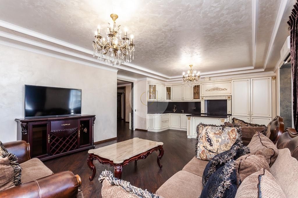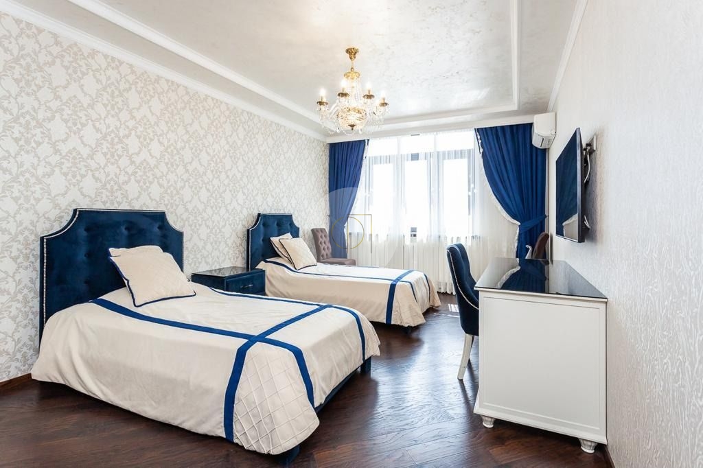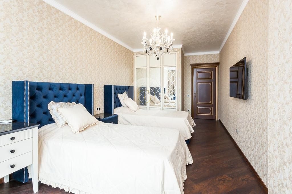 В квартире 2 полноценные с/у, гардеробная, 3 большие спальни, просторная гостиная совмещения с кухней.Сделан дорогой дизайнерский ремонт, с использованием дорогих и качественных материалов.